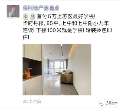 仅近期观察,朋友圈二手房中介的推广语当中,已经开始有打着学校概念的二手房源出现。过去板块市场名不见经传的二手楼盘,在学校落地后,同样摇身一变成为了“学区盘”。