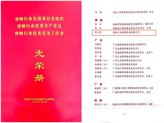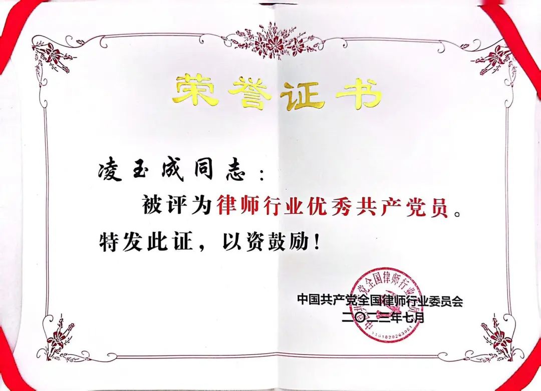 近日,我所党支部党员凌玉成同志被中国共产党全国律师行业委员会授予“律师行业优秀共产党员”荣誉称号。