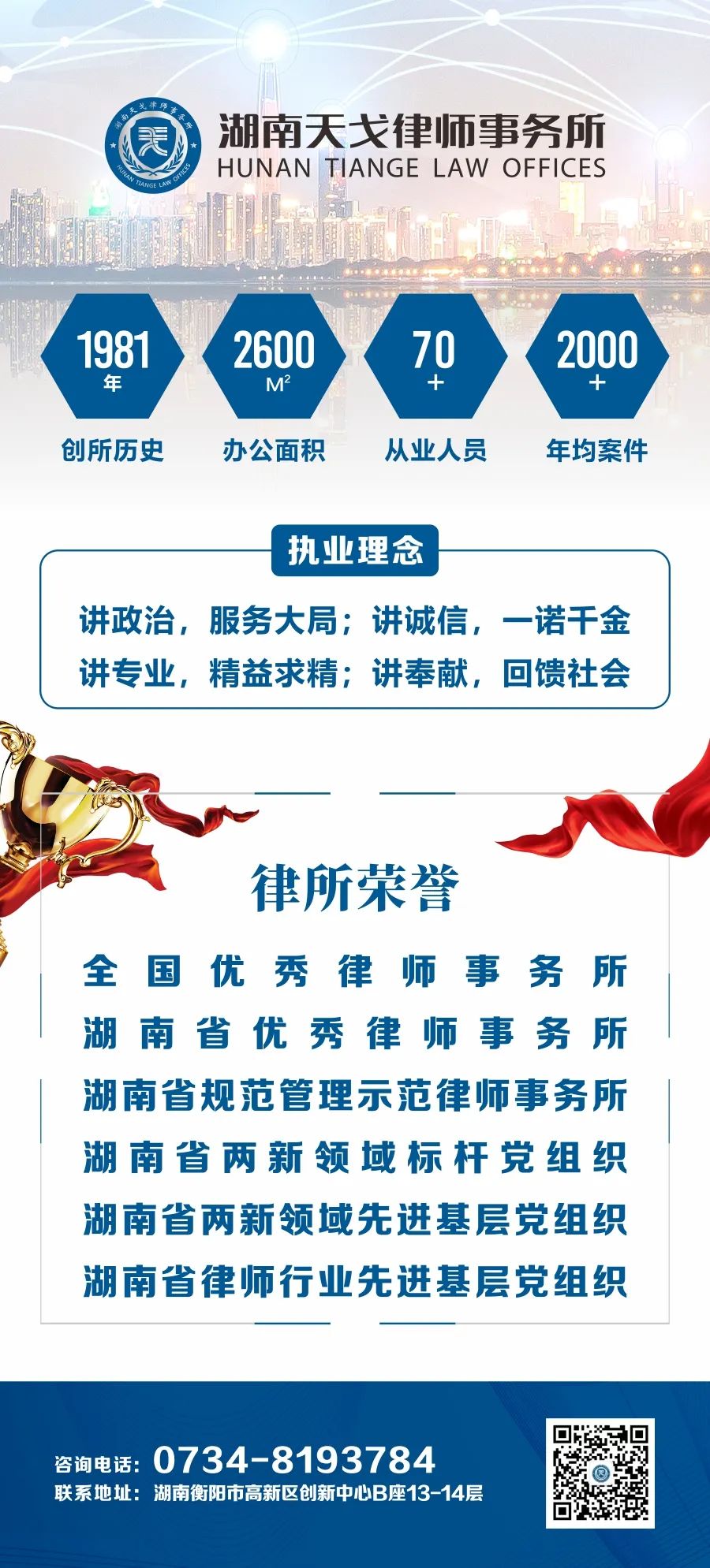 中共党员,湖南天戈律师事务所合伙人,副主任。法律、土木工程双学历,一级建造师、监理工程师、装配式建筑高级工程师、高级企业合规师。现为省律协建筑房地产专委会委员,市律协建筑房地产专委会委员、业务指导与继续教育专委会委员,市破产管理人协会理事,市仲裁委员会仲裁员。先后被评为衡阳仲裁委优秀仲裁员、衡阳市律协建房委优秀委员,2021年度衡阳市司法系统优秀共产党员,2020-2022年度衡阳市优秀律师。从业二十三年来,先后或同时担任数十家政府机关、企事业单位法律顾问,擅长建筑房地产、公司法务、民商、婚姻家庭与金融等领域的诉讼非诉讼法律服务及刑事辩护业务。
