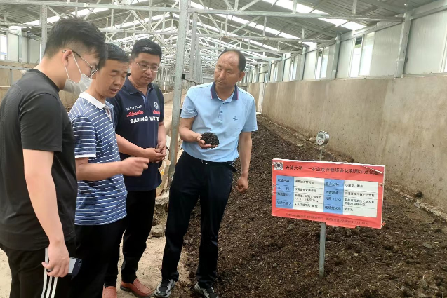 天津大学师生在有机肥厂指导发酵鸡粪与菌菇渣