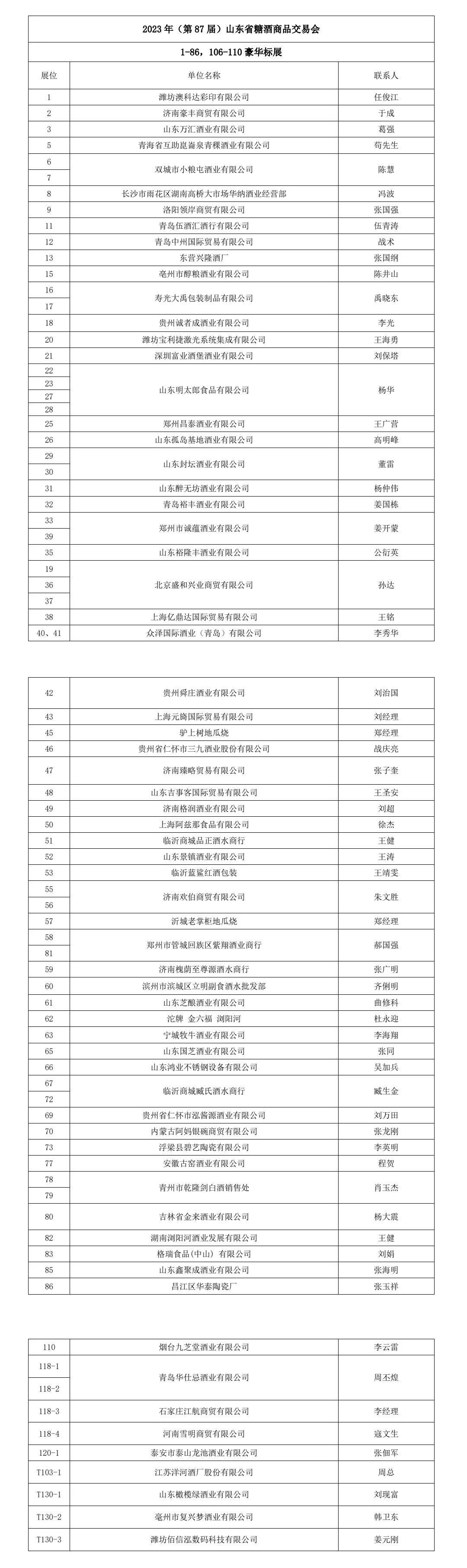 本届交易会由山东省糖酒副食品商业协会主办,潍坊市商务局和潍城区政府承办,潍坊市食品协会、山东景芝白酒有限公司、山东云门酒业有限公司和山东秦池酒业有限公司协办。主会场设在潍坊鲁台会展中心,规划展出面积5万余平米,共分一楼、二楼两大展区,其中一楼主要为特装展区、二楼为标准展位区。其中兰陵、景芝、孔府家、泰山、国井、古贝春、琅琊台、趵突泉、云门春、花冠、百脉泉、景阳冈、沂蒙老区、秦池、红太阳、黄河龙、百粮春、浮来春、威海颐阳、金彩山、蒙山酿酒、心酒、欣马、、齐民思、孔子等近30家白酒骨干企业,以华裕为首的葡萄酒企业、以即墨老酒为主的黄酒企业、以青岛劳特啤酒、圣洲啤酒等为主的啤酒企业将在会上高调集中亮相,将全面展示鲁酒近年来的发展成就和实力风采。