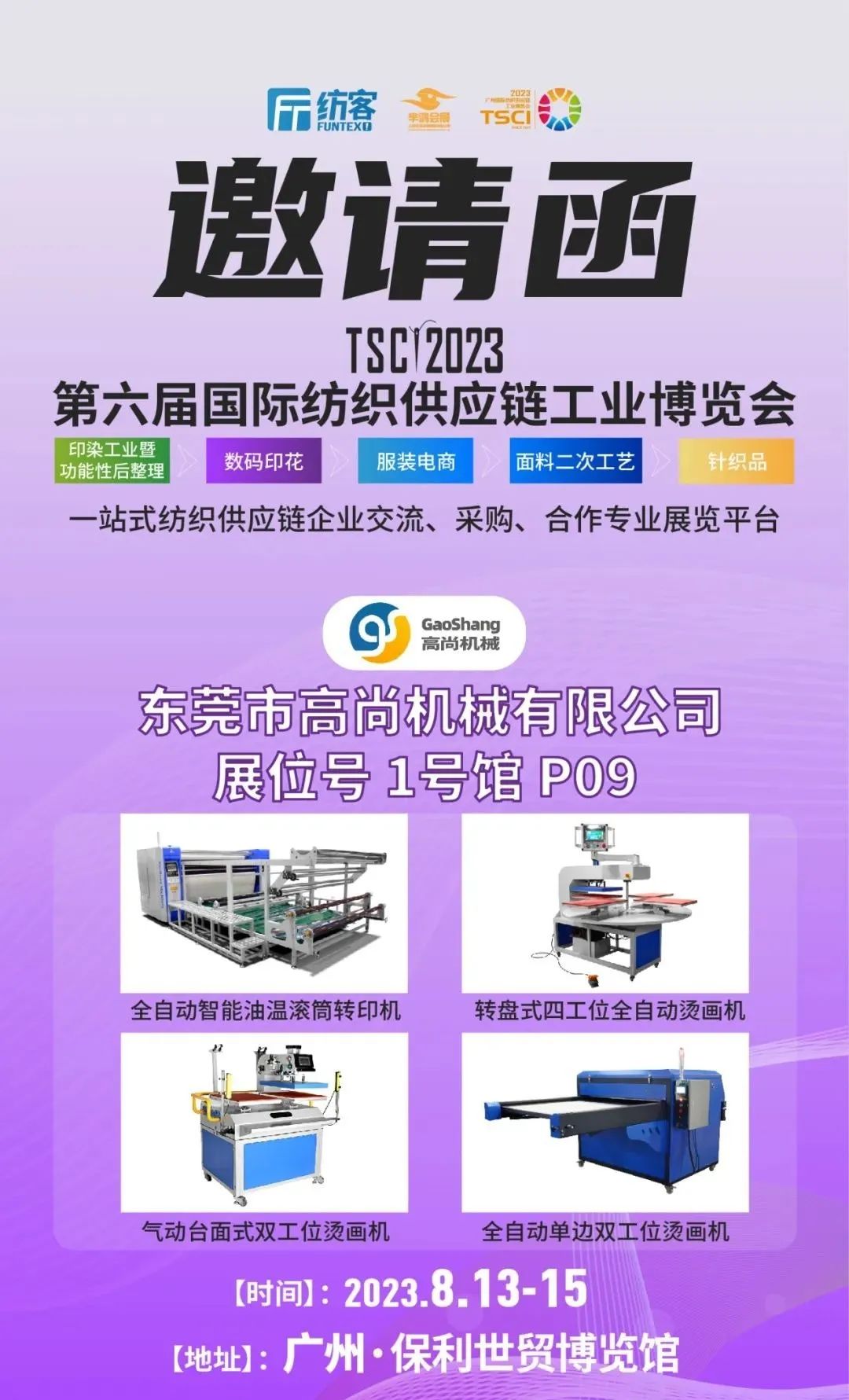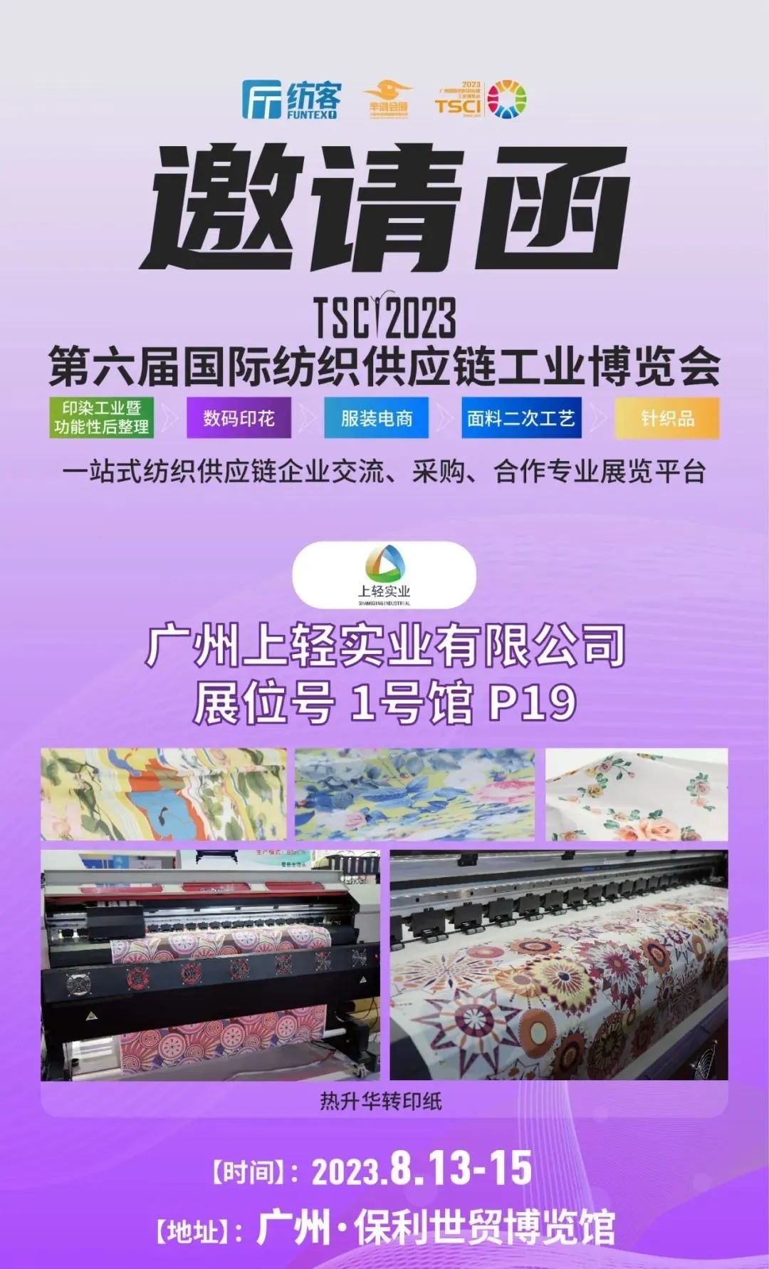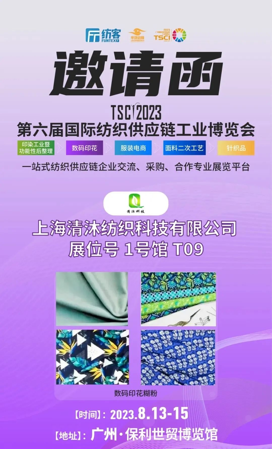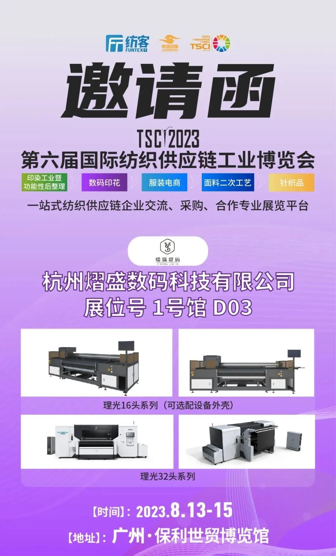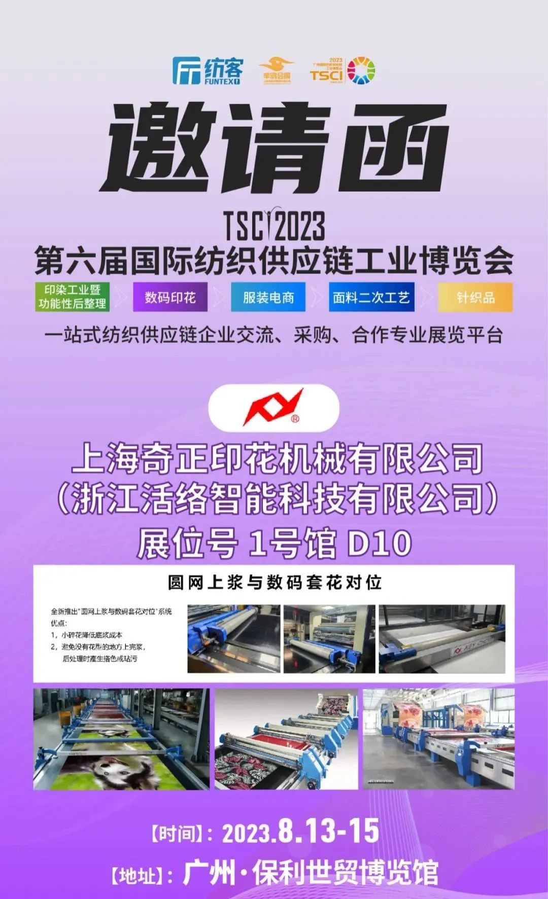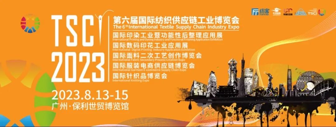 由上海纺客信息科技有限公司主办、上海芈鸿会展服务有限公司承办的TSCI 2023(第六届)国际纺织供应链工业博览会以持续“构建纺织闭合生态圈,共赴智能纺织新世界”为主题,整合四大产业资源,链接纺织供应链上下游,将于2023年8月13-15日在广州保利世贸博览馆盛大开展,展出内容涵盖数码印花、印染工业、后整理应用、面料二次工艺、服装电商、针织品及辅助系统等,着重于先进“智”造技术,推广新产品、新技术、新工艺、新模式,为纺织服装企业创造交流合作和采购商机,助力行业向“新制造”转型升级!