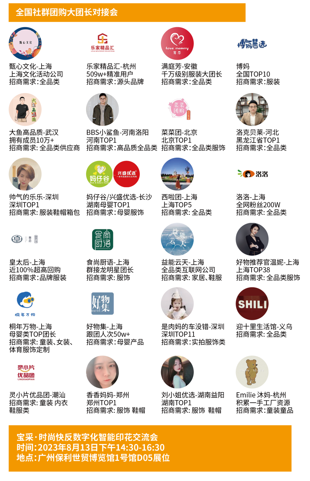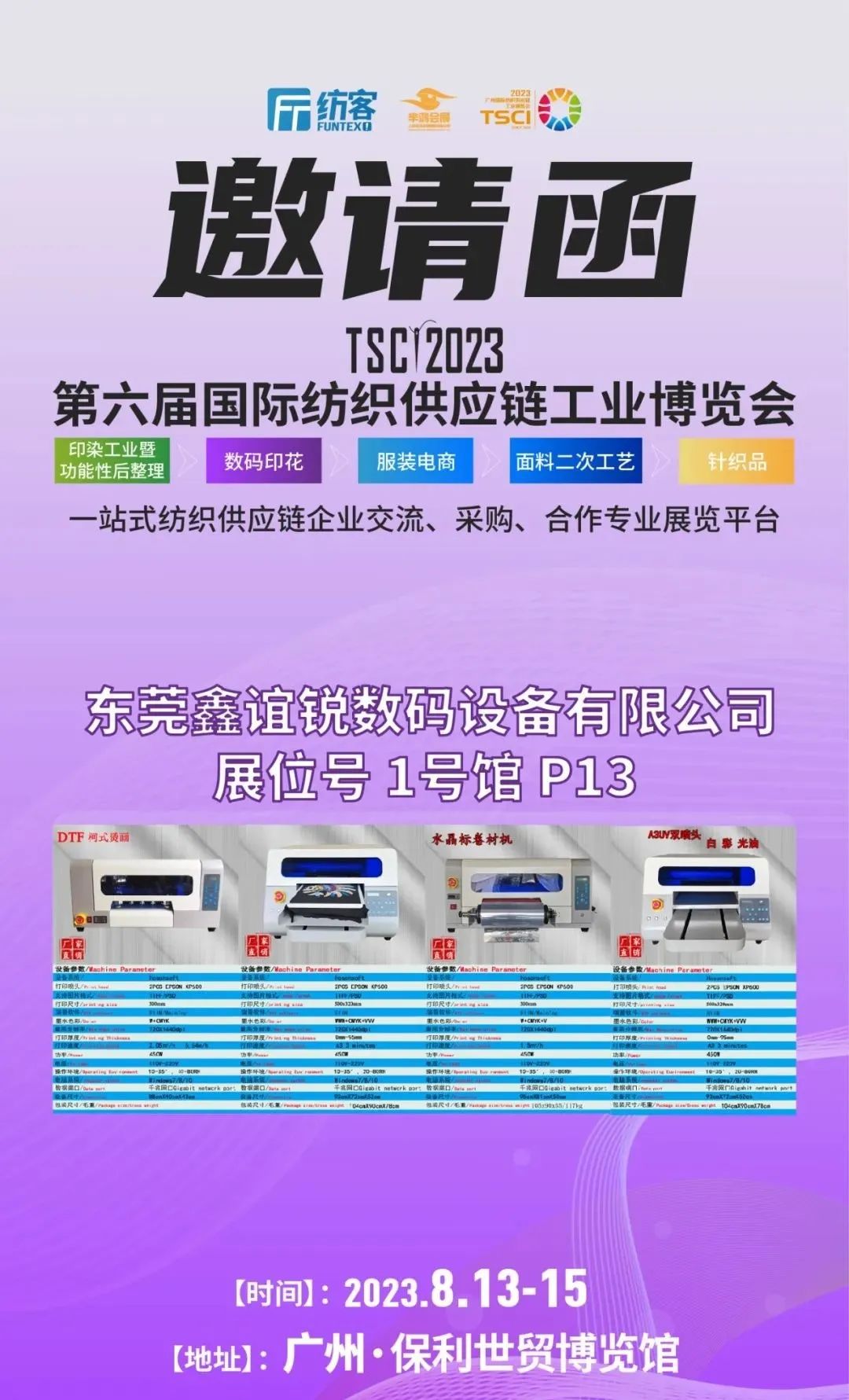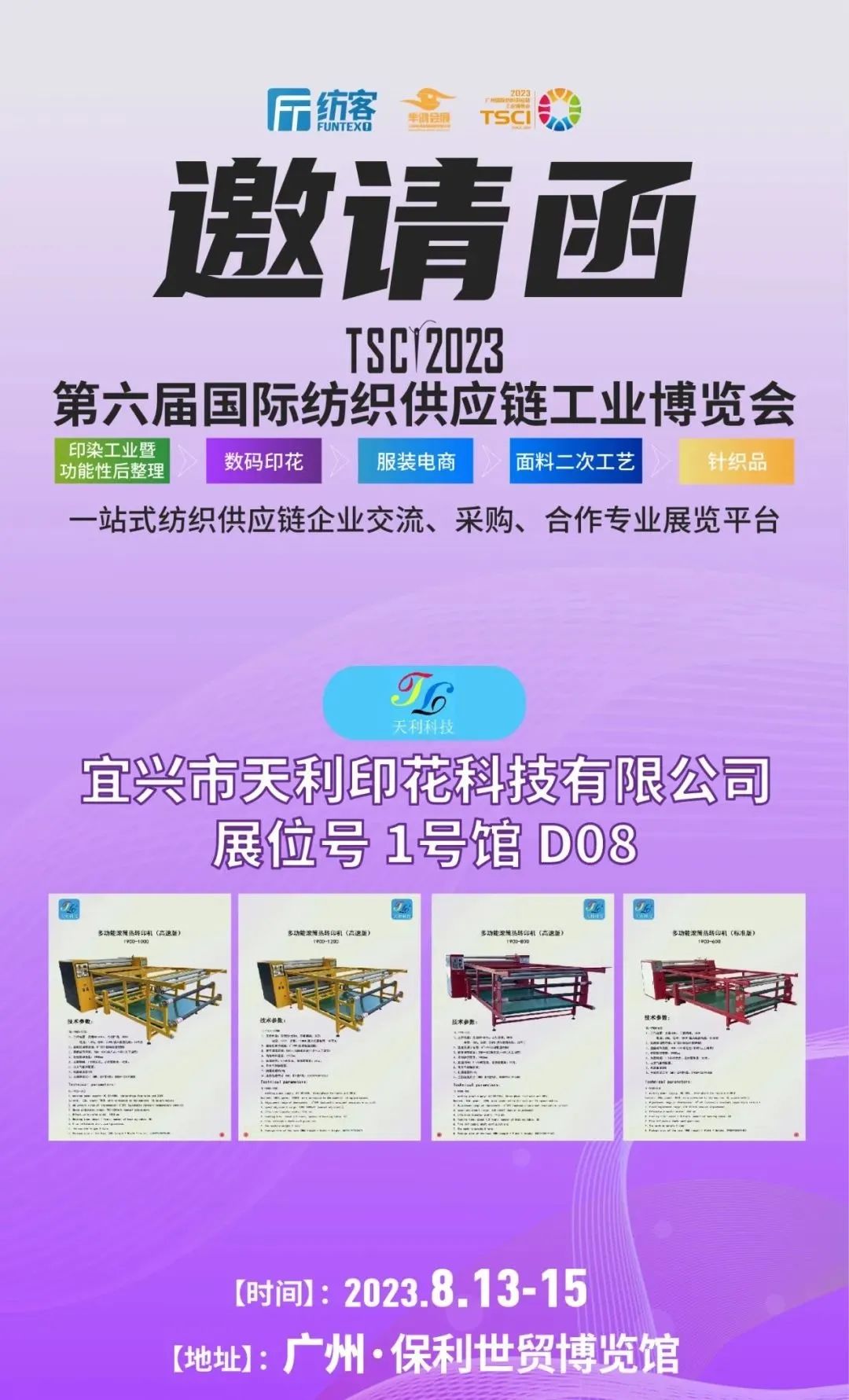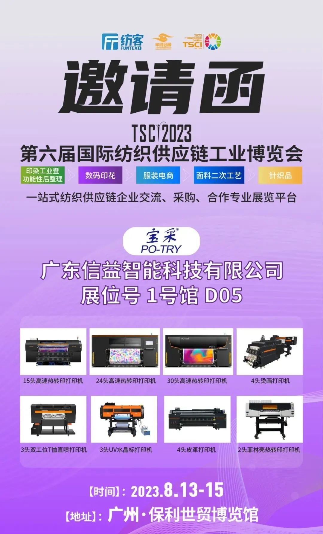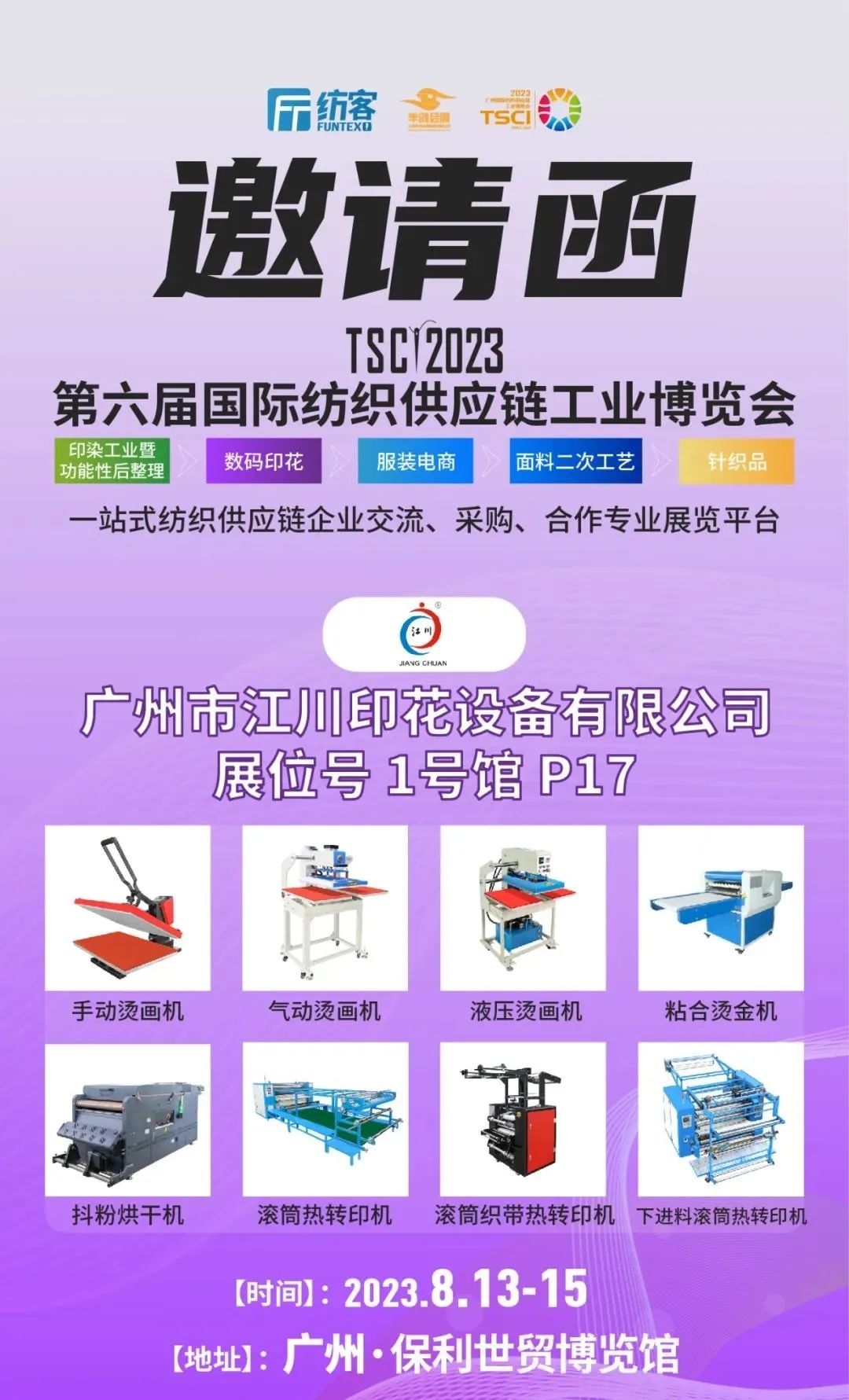 由上海纺客信息科技有限公司主办、上海芈鸿会展服务有限公司承办的TSCI 2023(第六届)国际纺织供应链工业博览会以持续“构建纺织闭合生态圈,共赴智能纺织新世界”为主题,整合四大产业资源,链接纺织供应链上下游,将于2023年8月13-15日在广州保利世贸博览馆盛大开展,展出内容涵盖数码印花、印染工业、后整理应用、面料二次工艺、服装电商、针织品及辅助系统等,着重于先进“智”造技术,推广新产品、新技术、新工艺、新模式,为纺织服装企业创造交流合作和采购商机,助力行业向“新制造”转型升级!