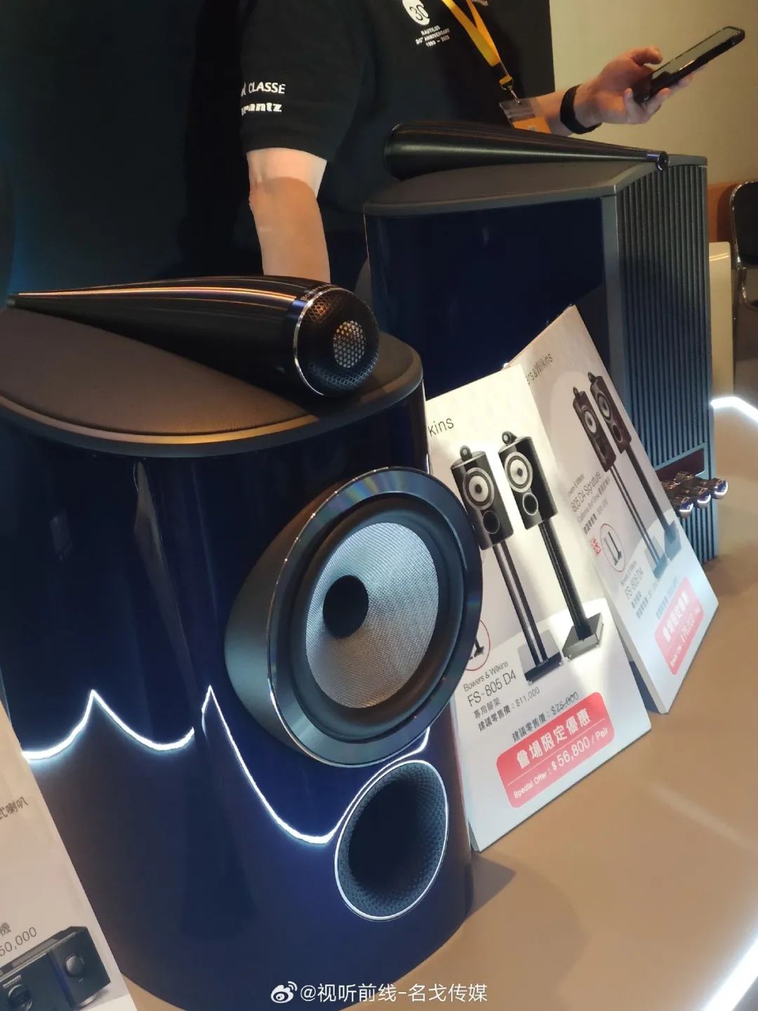 Bowers & Wilkins 在现场展出了800系列音箱,除此之外鹦鹉螺30周年音箱也在现场开声演示。
