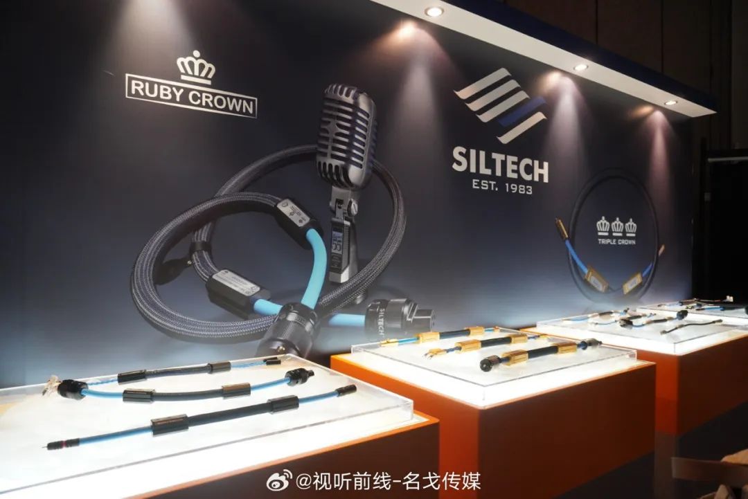 Siltech & Crystal Cable在S424展房展出了Siltech Symphony五路落地音箱,此外还有Siltech银彩全新Ruby Crown线材系列,与此同时,Crystal Cable旗下的音箱和线材也到了现场展示。