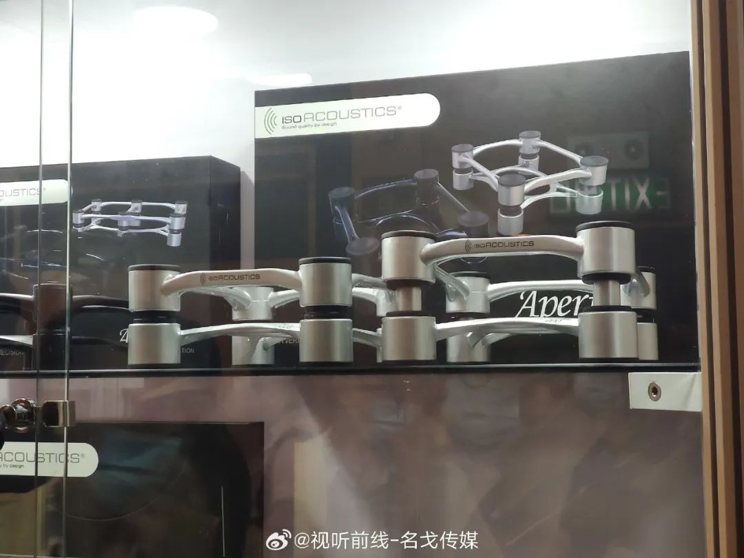 先声音响有限公司在二楼的展房展出ISO ACOUSTIC的机架,脚垫等产品。