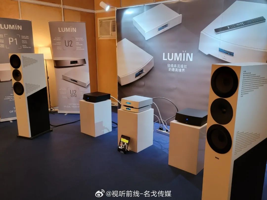 视科系统带来LUMIN录铭多款解码数播产品,主力演示L2音乐服务器、P1串流播放前级,搭配AMP后级放大器和Amphion Krypton 3落地音箱。