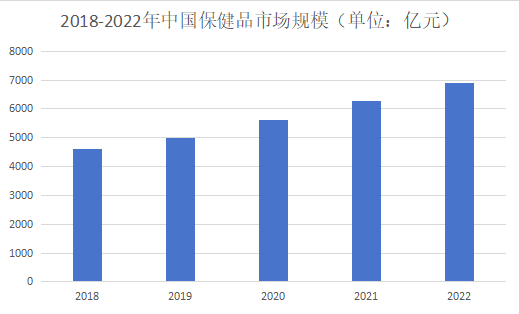 一般而言,广义的保健品可主要分为保健食品、保健药品和保健用品三大类。前瞻数据显示,2018-2022年中国保健品市场的市场规模呈现逐年上升的趋势,2021年市场规模达到6272亿元,同比增长12%;初步统计,2022年,中国保健品市场规模超过6900亿元。