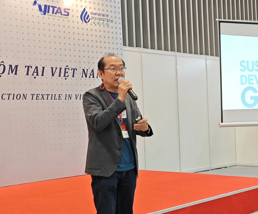 会上,声白集团高级总监Kent Teh先生也分享了全球纺织行业ESG发展的趋势,强调了越南发展绿色纺织业的决心和规划,充分肯定了湙可染™无水染色技术的重要性和前景。