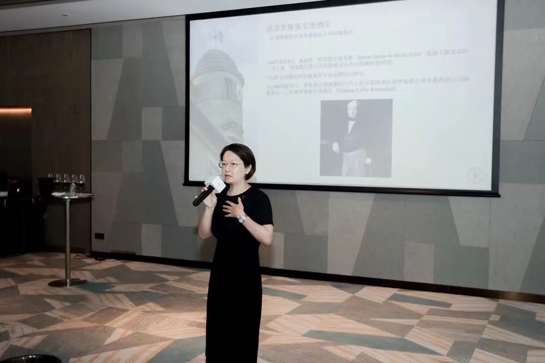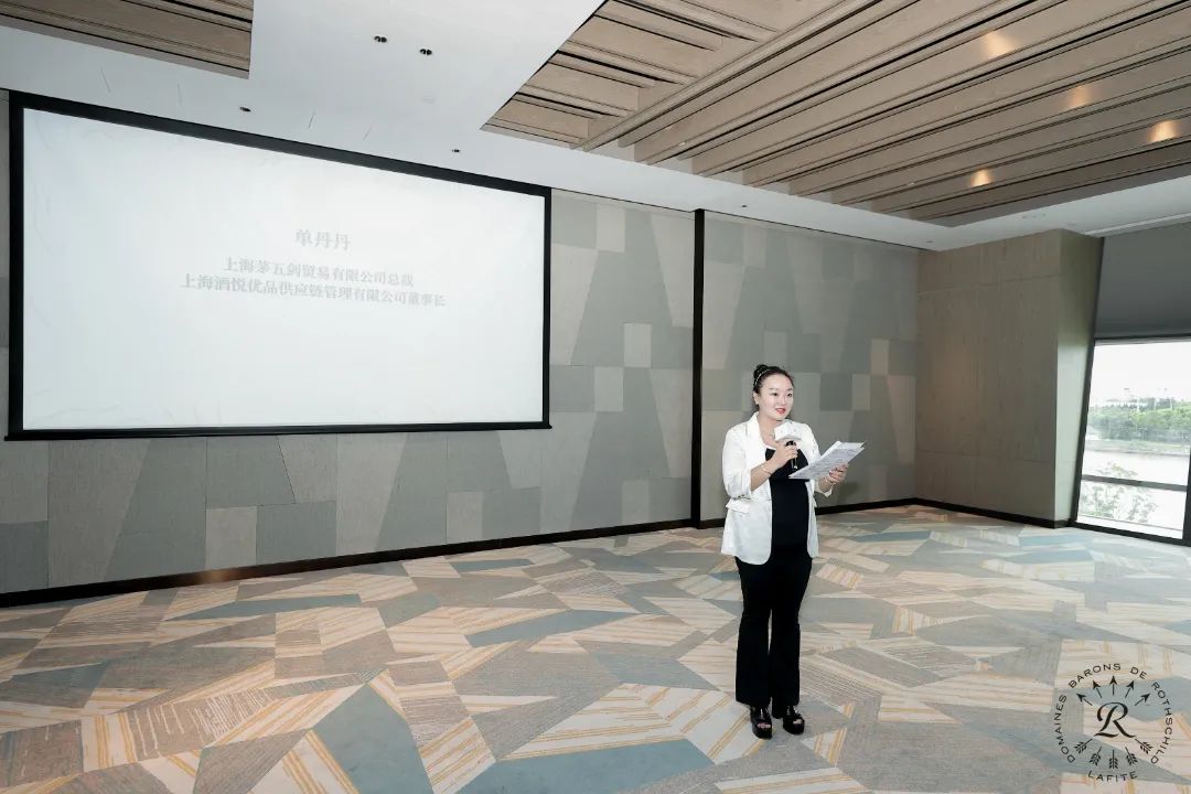 拉菲罗斯柴尔德男爵酒业公司中国区总经理宋萍(Anna Song)女士发言,她分享了拉菲的历史、品牌故事以及对红酒行业的独特见解。紧接着是上海酒悦优品供应链管理有限公司创始人、董事长单丹丹女士发言,她分享了酒悦优品的成长历程、业务发展和对红酒市场的看法。