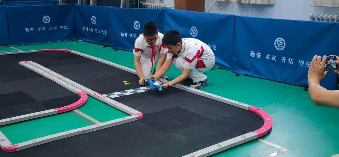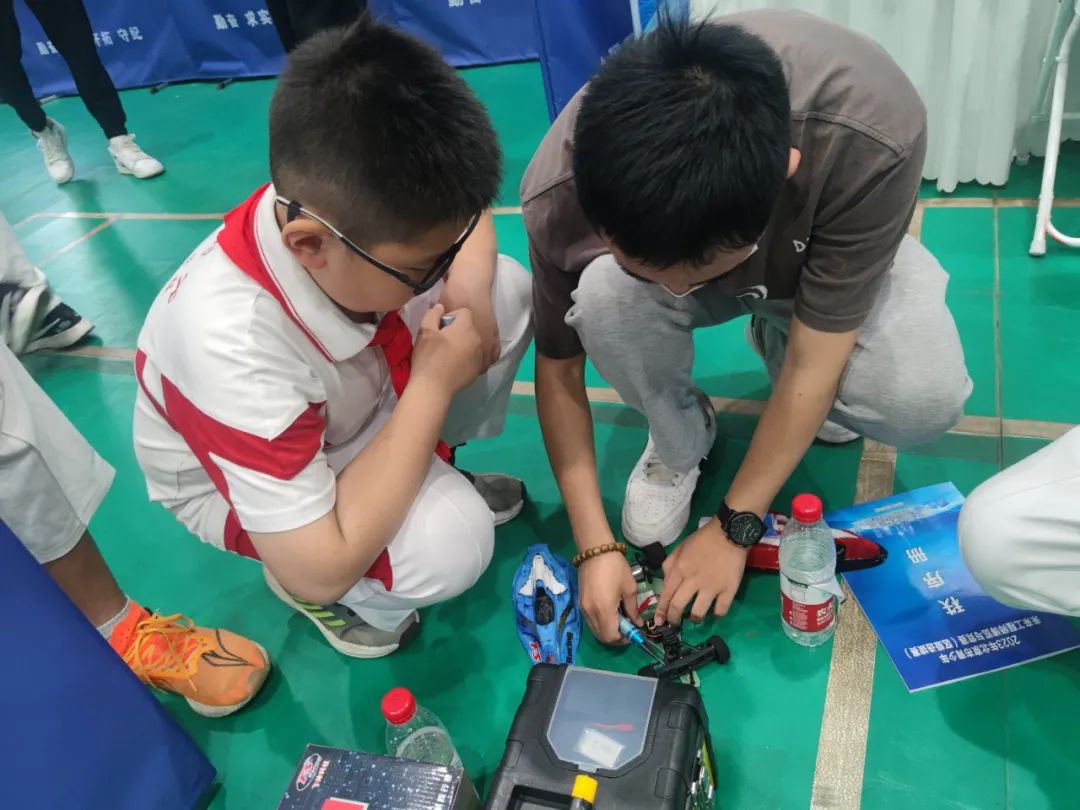 比赛之余,同学们相互交流相互学习,一辆看似不起眼的赛车,却蕴含多门学问,如何绘制车壳才能更显主题特色?零件对应赛车的哪种功能?如何拼接零件才可以跑得快且稳?如何控制赛车在坡度上前进不打滑?等等问题在孩子们的不断交流与训练中得到解决。