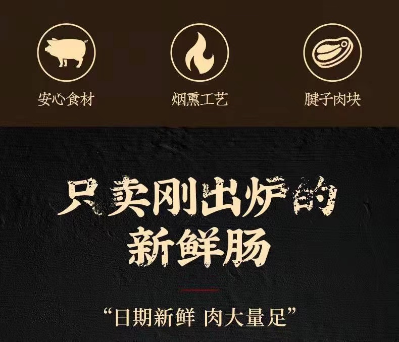 品牌方保证所有火腿都是日期新鲜现做现发,只卖刚出炉的鲜肠!