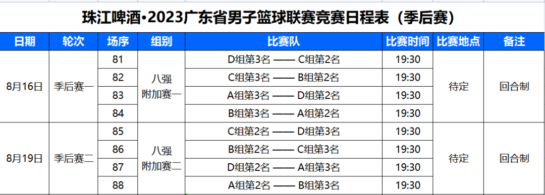 在常规赛小组名次列后的先进行主场比赛