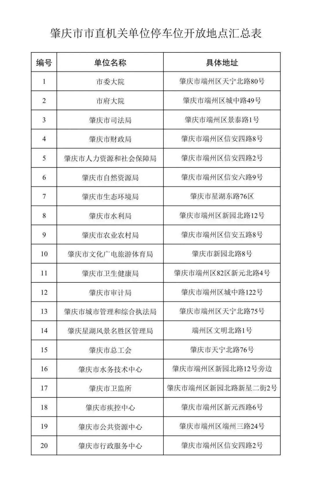 肇庆市市直机关单位停车位