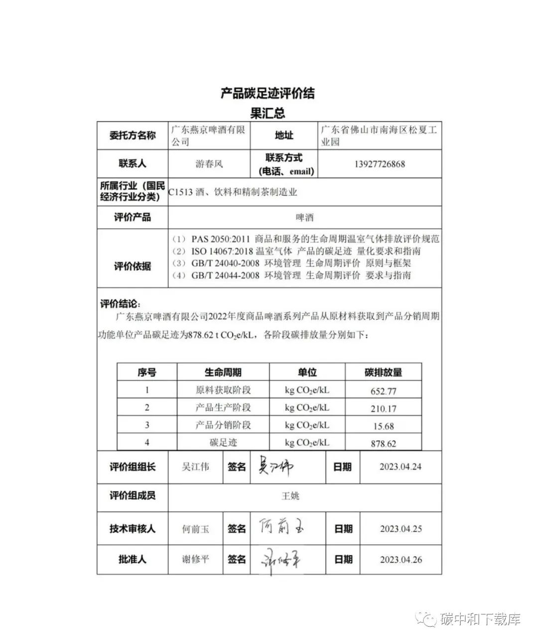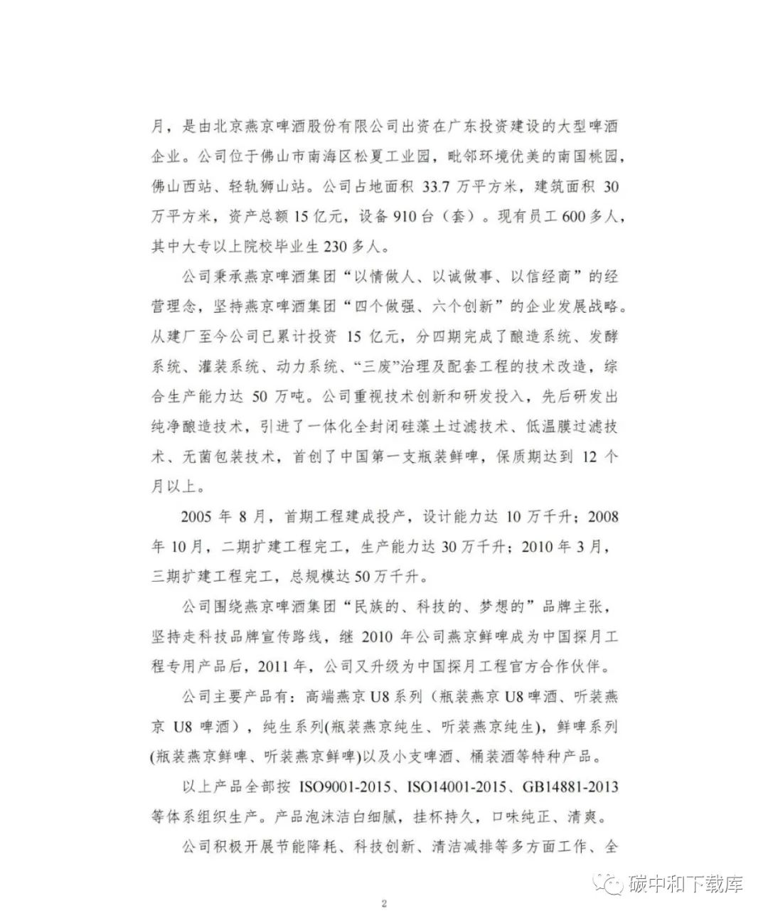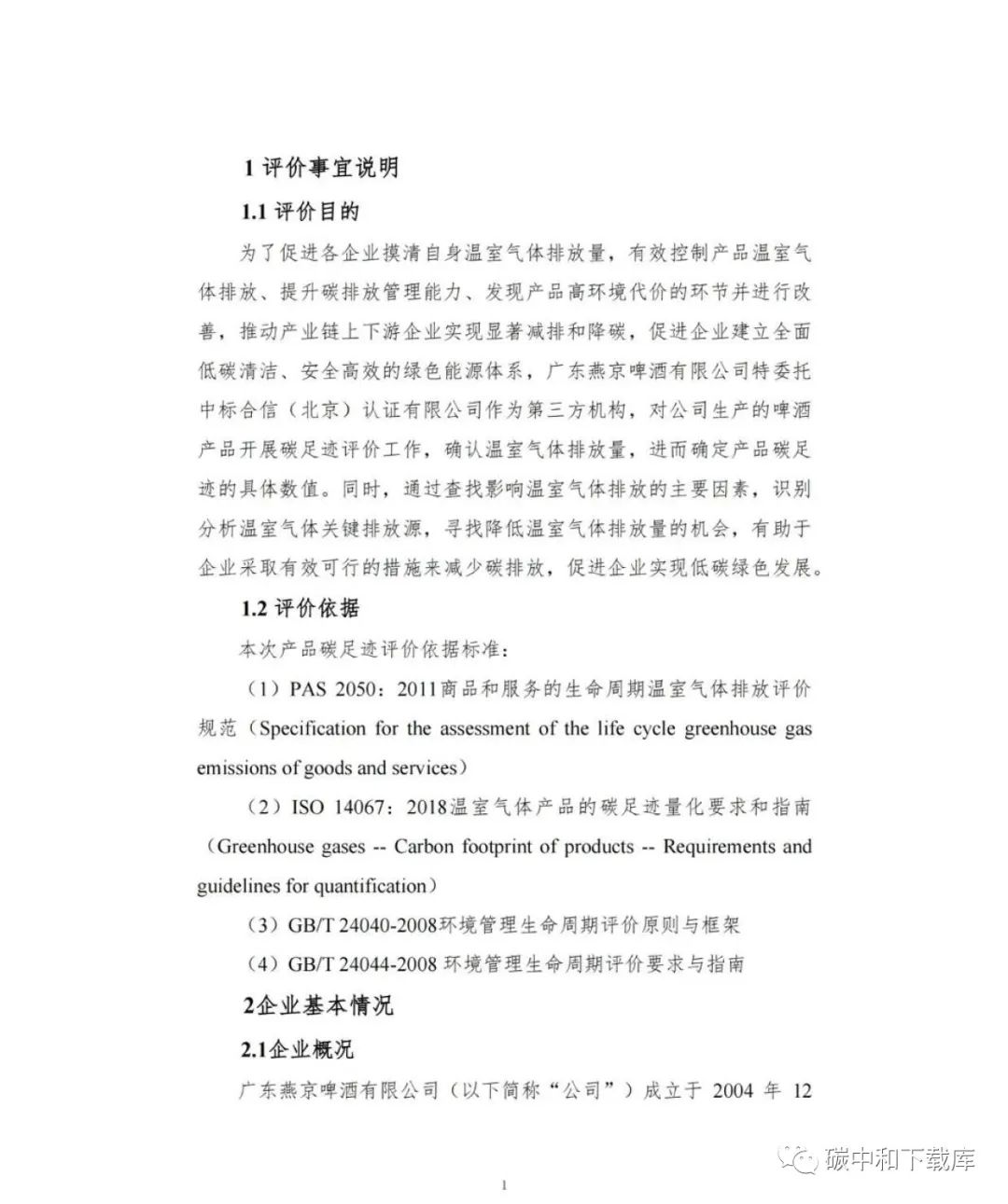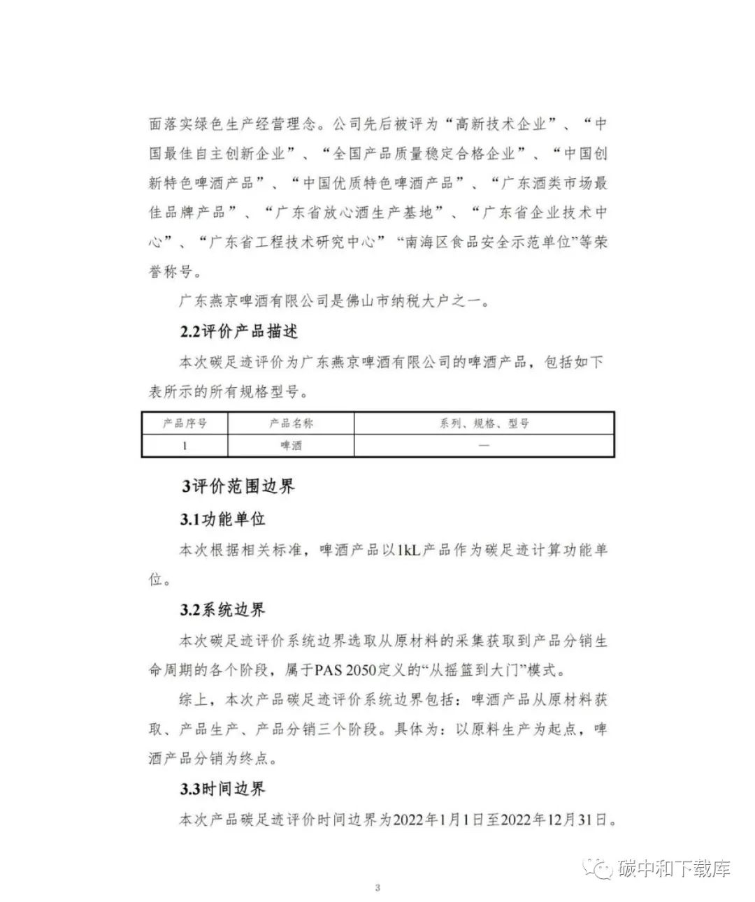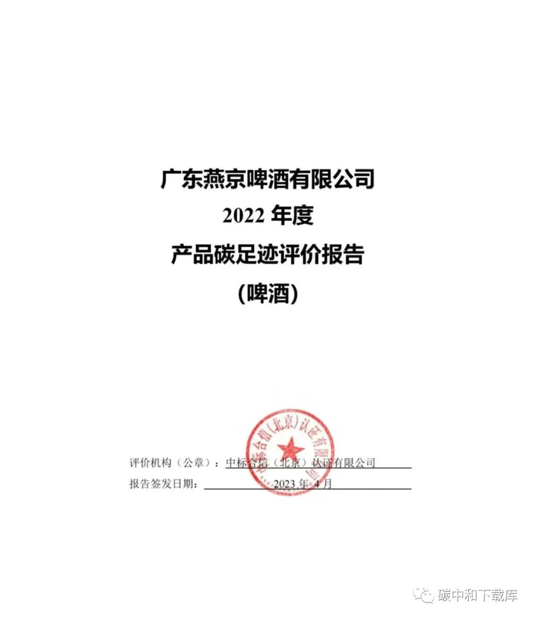 广东燕京啤酒有限公司2022年度产品碳足迹评价报告(啤酒)