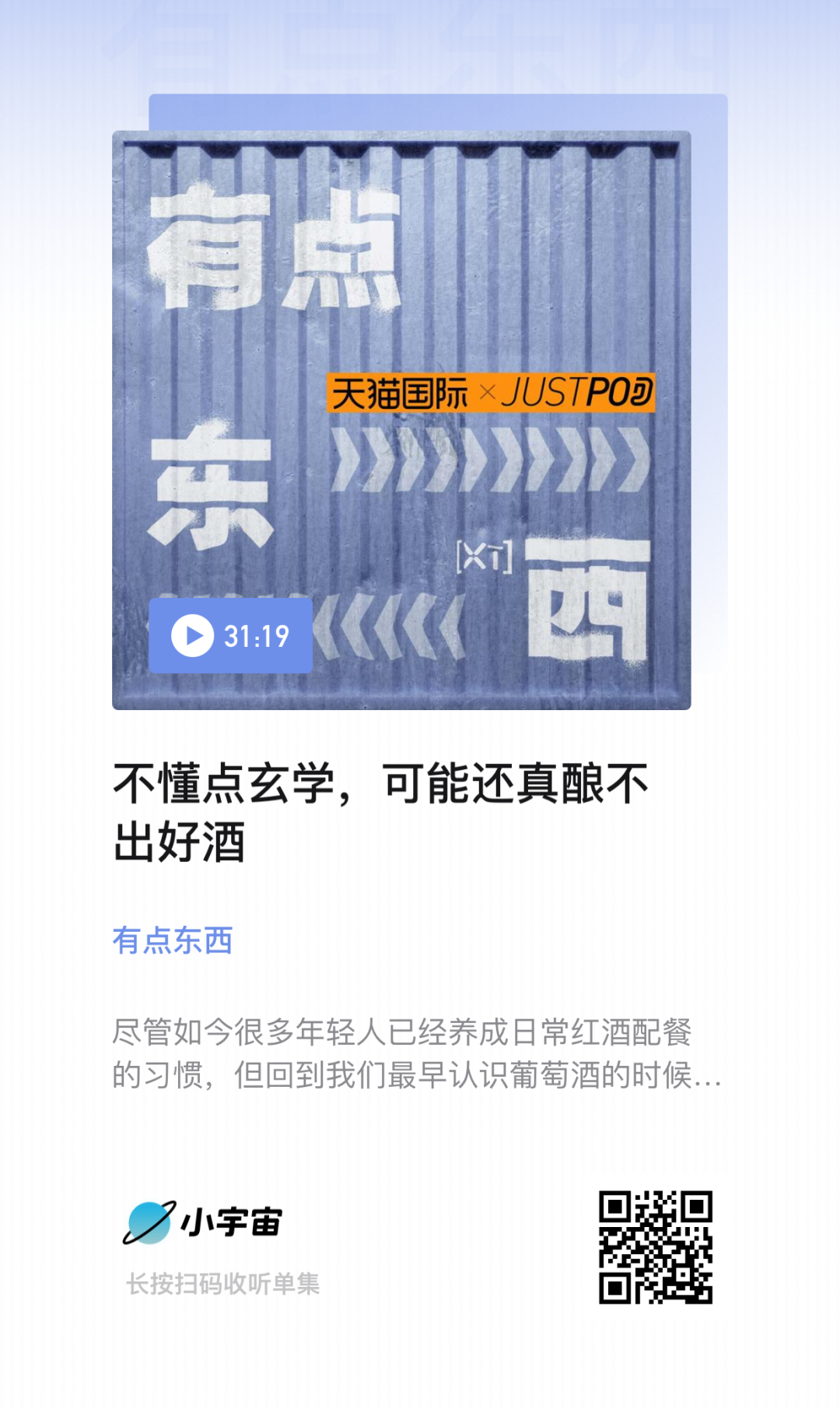 对生活的热爱藏在每一个日常细节里。它是你选择的出行方式、参与的户外运动,也是你如获珍宝的一张老唱片、或是无意间挖掘的小众设计师......我们在全球搜罗那些热爱生活的人,收集他们讲述的故事、挖掘背后的商业与文化脉络,连接东西方,发现全世界。《有点东西》第二季,天猫国际青年实验室再次携手JustPod,8集限定叙事播客,带你一起漫游理想生活的多元宇宙。大多数人最早认识葡萄酒,大概要感谢那个高贵又神秘的「82年的拉菲」。