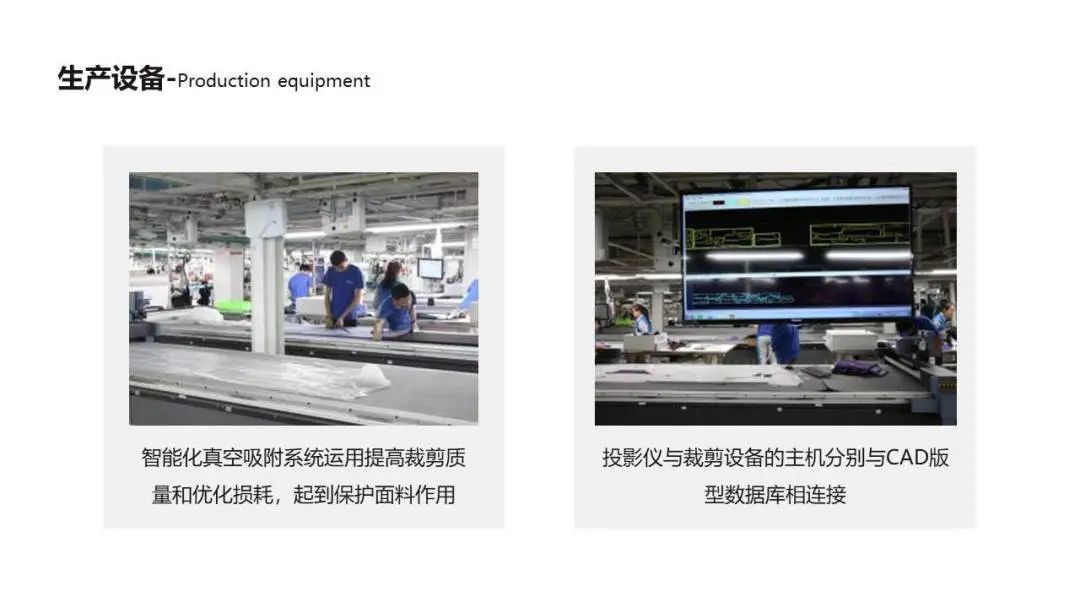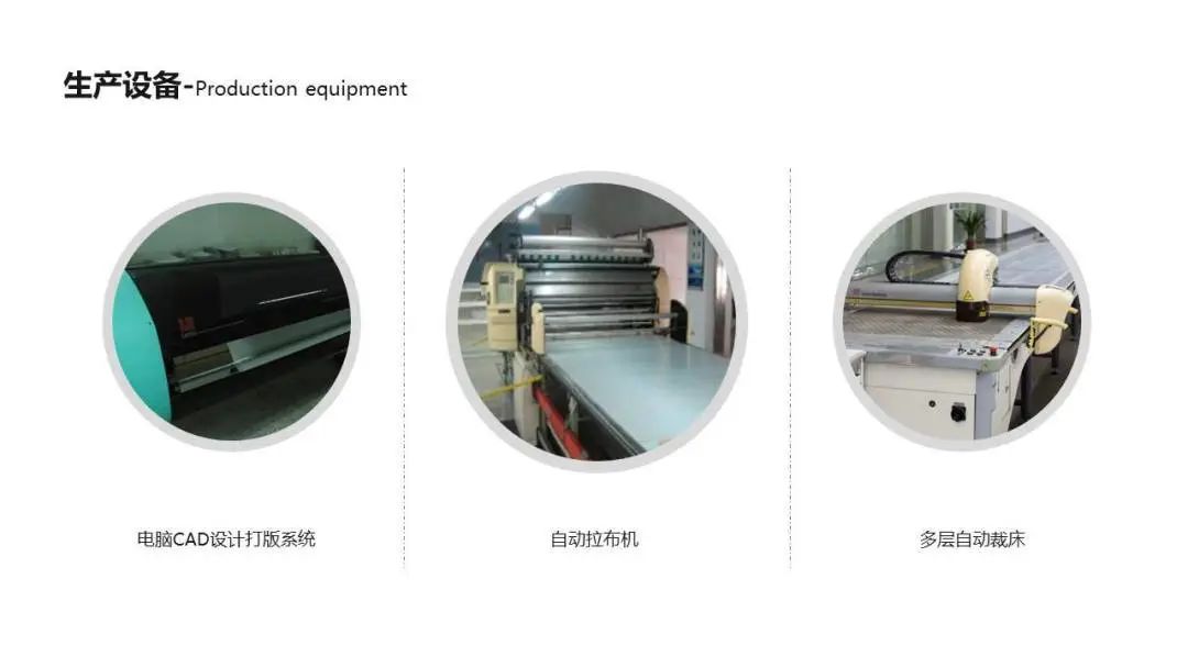 公司是一家集开发、设计、制作、销售、服务于一体的具有现代化风格的服装生产企业。公司拥有高级管理人员,技术过硬的操作团队,先进的服装制作设备及生产流水线,技术力量雄厚。