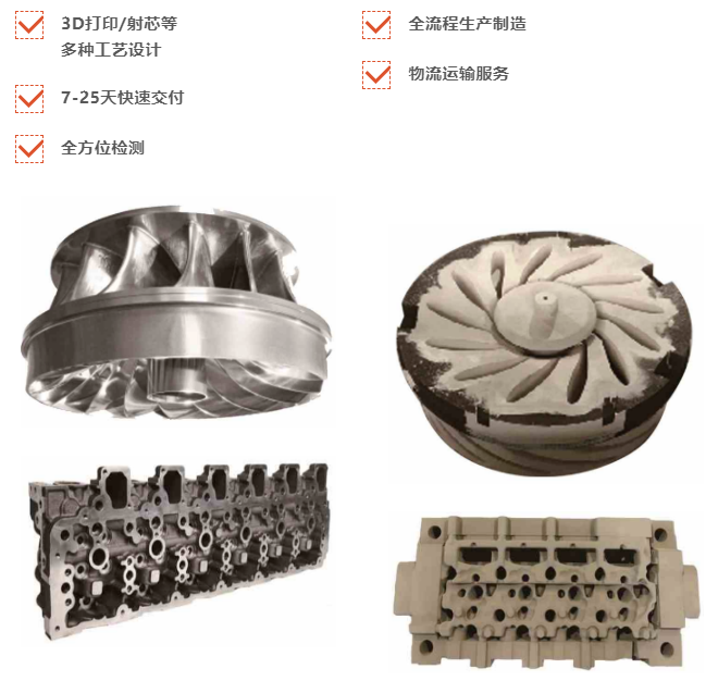 依托共享50余年专业铸造经验和领先的3D打印技术,在全国20余个地区设立服务点,提供3D打印砂型、黑色(铸铁/铸钢)及有色金属的快速铸造服务。