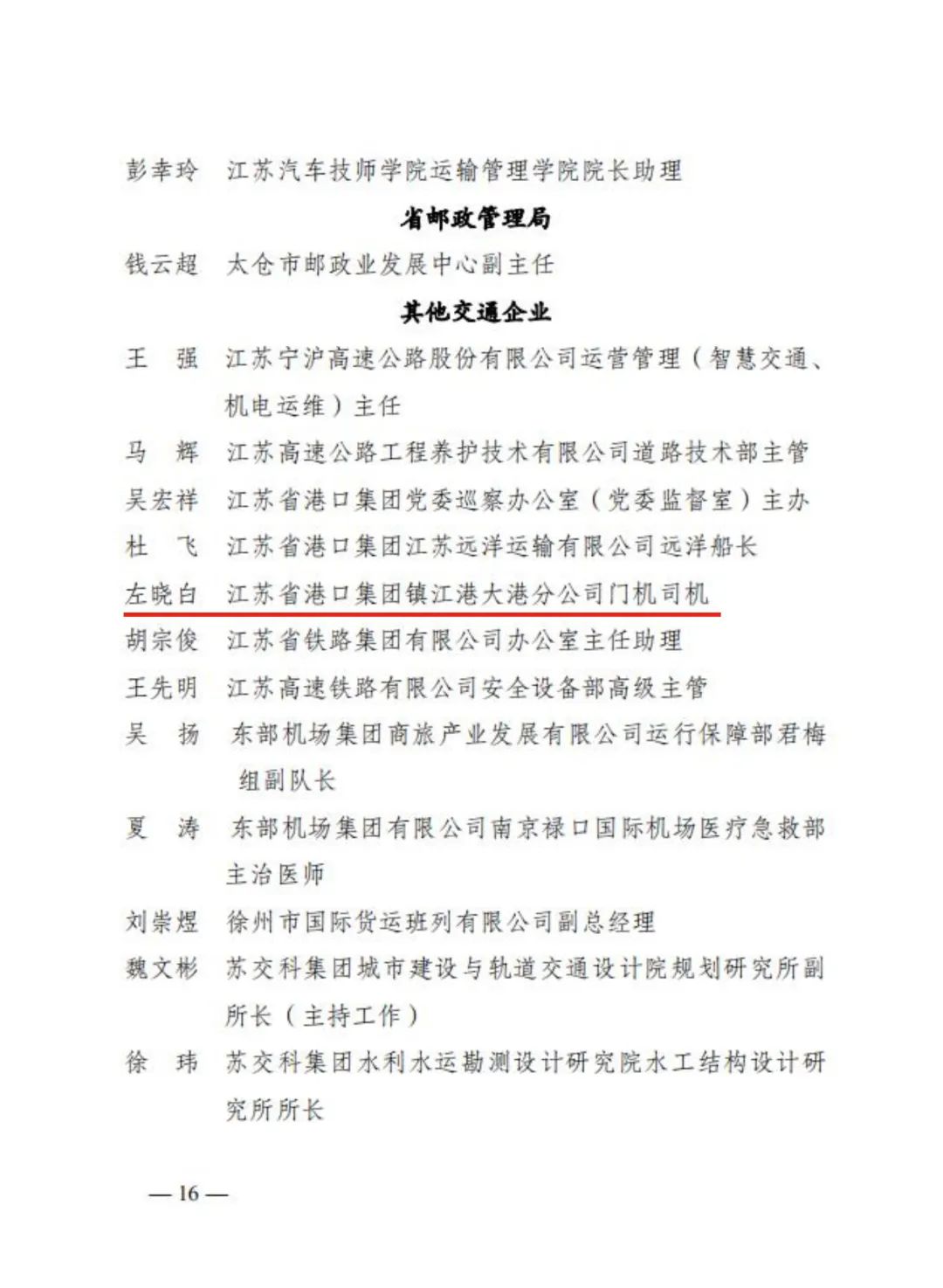 近日,省交通运输行业党委发布《关于表扬全省交通运输行业青年建功标兵团队和青年建功标兵个人的通报》,我港职工左晓白荣获“全省交通运输行业青年建功标兵个人”称号。