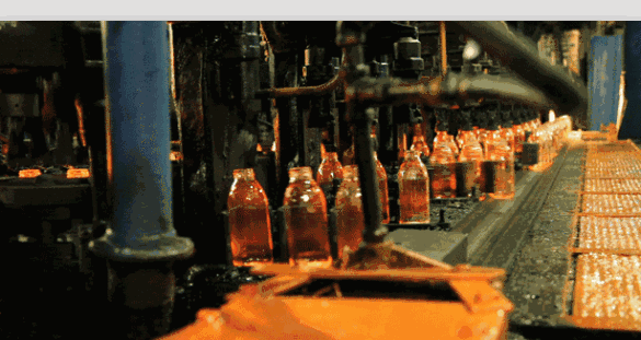 【现代的玻璃瓶吹制机器正在工作 来源:网络】