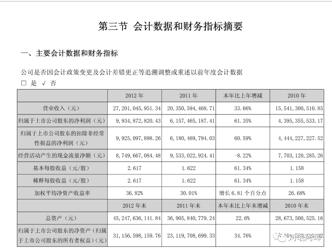 白酒2022年双位数增长,23年一季报又是双位数增长,怎么会崩盘?好的,让我们梦回2012年,看看当时白酒崩盘前夜是不是和现在的白酒好看的财报一样。我在下面列举了四大名酒2012年超两位数的超高增长到2013年除茅台外的其它负增长财报截图。