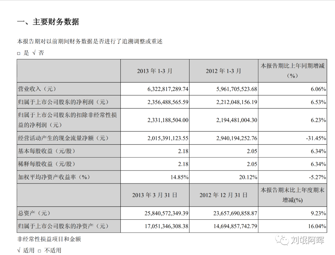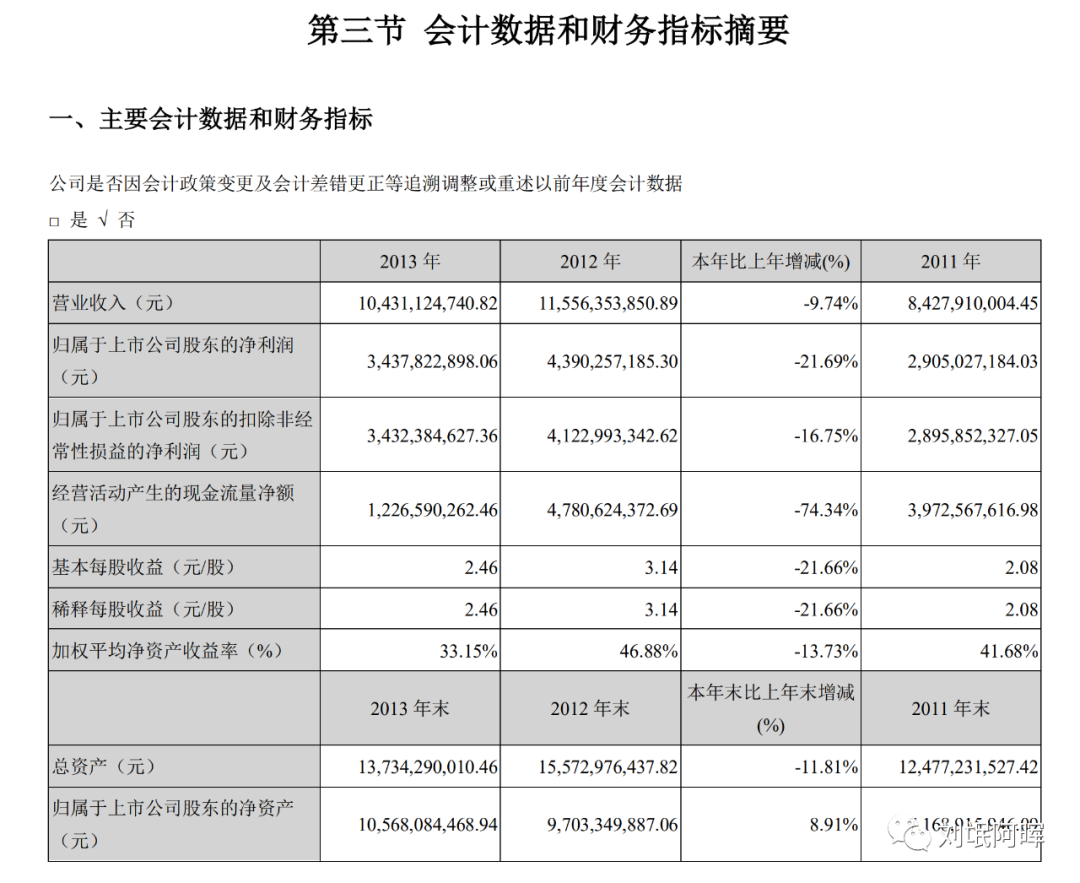 这里也包括了从2012辉煌期至2013年一季度转折期的财报变化。看完后,大家就会了解白酒也是有周期的,这个周期包括三个部分,产业周期,库存周期,基金报团周期。我们股市有个特点,任何行业股价的最高点和最低点都是机构大资金拉高的或打压下来的。