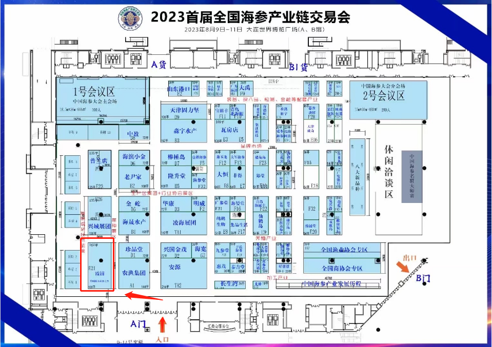为进一步扩大霞浦海参的知名度及品牌影响力,本次霞浦展团采取政府补助展位费用,统一布展的方式参展。展馆面积162平方米,为政府展团面积最大的展馆。展馆所处的位置为入口处,最显眼位置,突显霞浦海参在全国的位置。