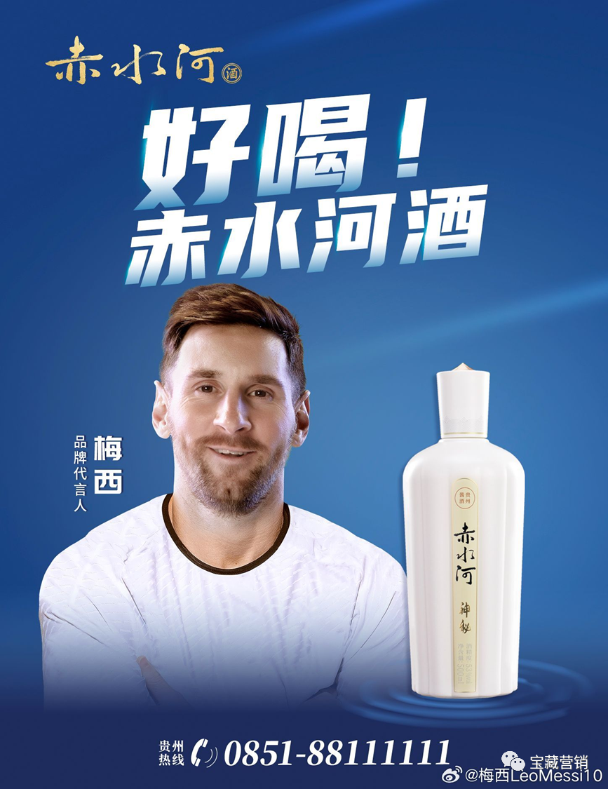 8月1日,梅西官方媒体发文:很高兴成为@赤水河酒 的品牌代言人!未来的一段日子里,希望我和赤水河酱酒给大家带来更多的快乐与好运!”