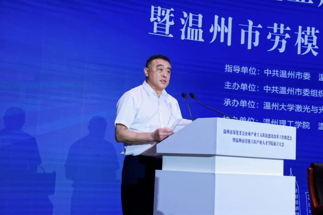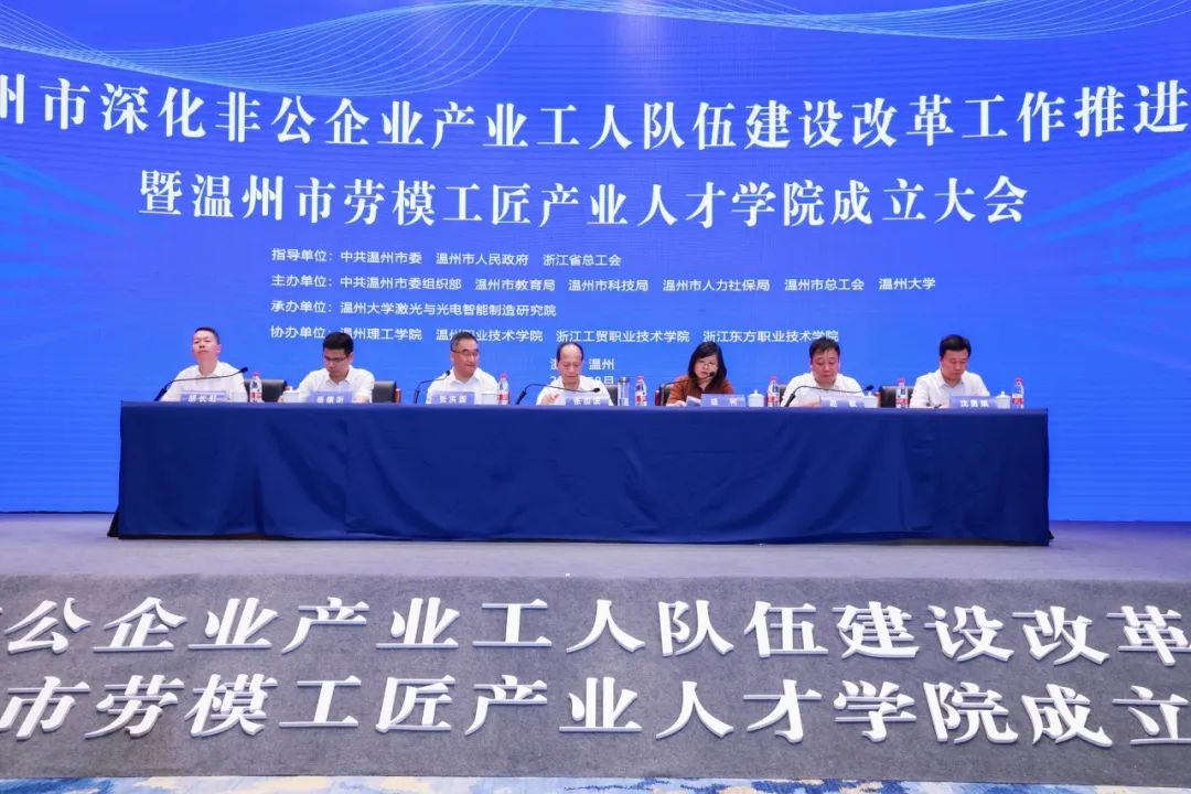 8月10日上午,由中共温州市委、温州市人民政府、浙江省总工会指导,中共温州市委组织部、温州市教育局、科技局、人力社保局、温州市总工会、温州大学联合主办,我院承办的温州市深化非公企业产业工人队伍建设改革工作推进会暨温州市劳模工匠产业人才学院成立大会在温州大学顺利召开。