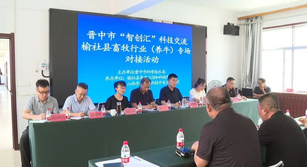 8月10日,我县组织开展晋中市“智创汇”科技交流榆社县畜牧行业(养牛)专场对接活动。市科技局副局长傅元智,县委常委、副县长贾永胜出席。山西农业大学动物科学院的专家团队,山西国牧科技有限公司相关负责人,县直相关单位、畜牧企业负责人参加。