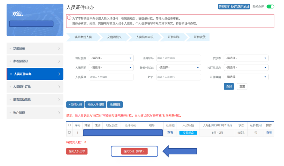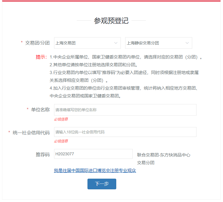(快消品独家讯) 进博会是世界上第一个以进口为主题的国家级展会,已成功举办五届,在国际采购、投资促进、人文交流和开放合作等方面均取得了积极成效,成为中国对外开放的重要窗口。第6届中国国际进口博览会将于2023年11月5-10日在国家会展中心(上海)举办,其中企业商业展划分为食品及农产品、消费品、医疗器械及医药保健、服务贸易等六大展区。东方快消品中心作为进博会行业性官方合作伙伴诚邀广大会员企业注册参观展会!参会单位或个人对所填报的单位和个人注册信息的真实性负责,请谨慎填报。转账支付并上传凭证截止时间:2023年10月12日扫码及B2B网关支付截止时间:2023年10月15日https://www.ciie.org/ciie/f/visitor/pre-book?iCode=H2023077&signature=F605E9715EBAAEFDB0AC6808BD061DD9注册成功后页面自动跳转至用户中心,请根据流程填报参观预登记信息1.当初审通过后,系统会发送短信或邮件付款提示信息。登录后将会看到单位信息已审核通过,同时填报的人员即可开始支付,请点击“证件费用支付”2.确认勾选人员状态为待支付的人员,可点击“提交办证(付费)”3.付费成功后,后台会对人员信息进行二次审核,通过后将进入制证环节。企业可随时登录官网查看审核制证进度1、往届进博会专业观众在参观预登记界面,可以直接点击“我是往届进博会观众”进行验证登录。验证成功后,系统会自动关联往届注册信息,所有信息均可修改2、往届观众在完善注册信息时,请务必确认推荐码一栏内已填写“H2023077”,右侧出现“联合交易团-东方快消品中心交易分团”后,再继续填写企业信息,确认无误后点击“提交”。东方快消品中心 朱小姐 150 0002 5647(Z)