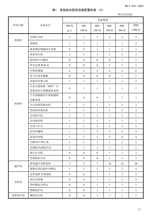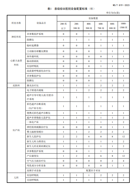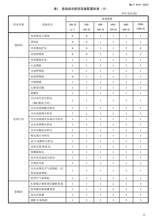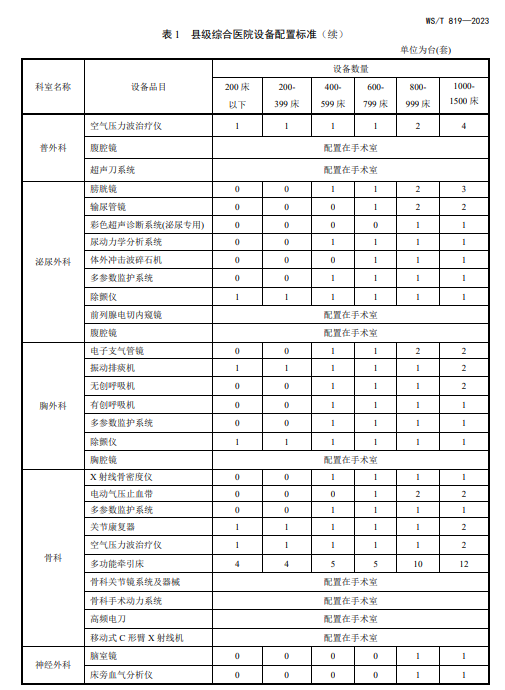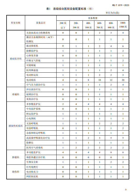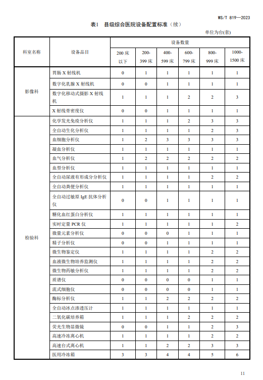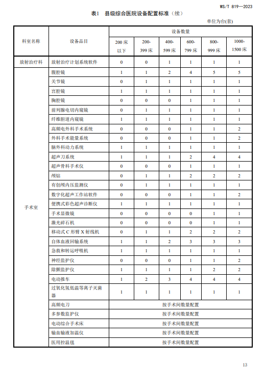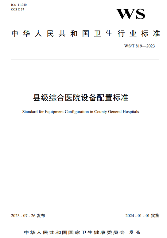WST819—2023 县级综合医院设备配置标准