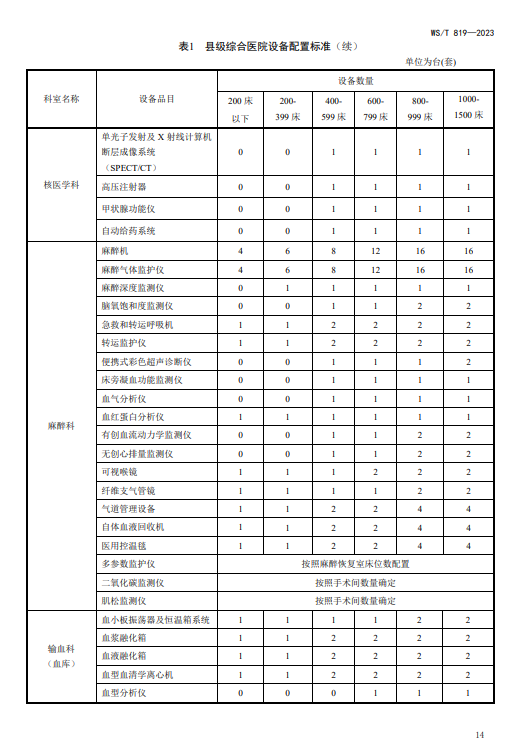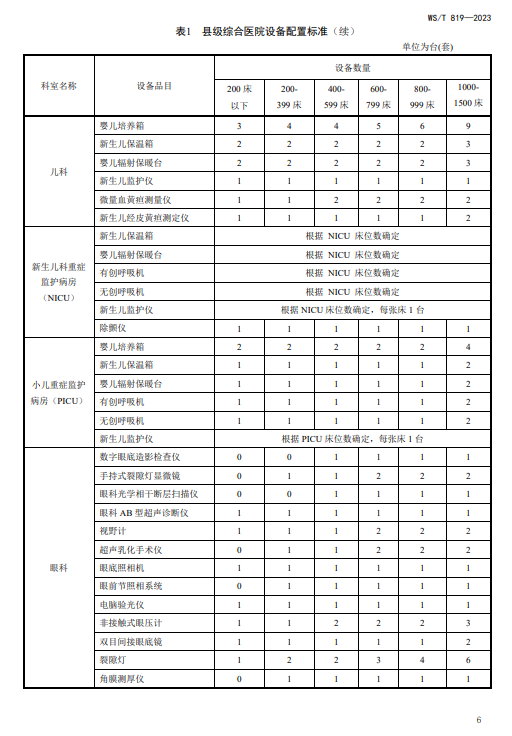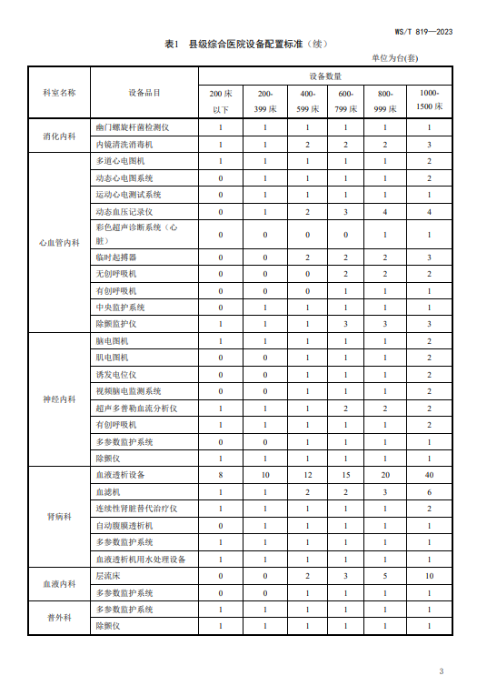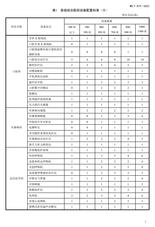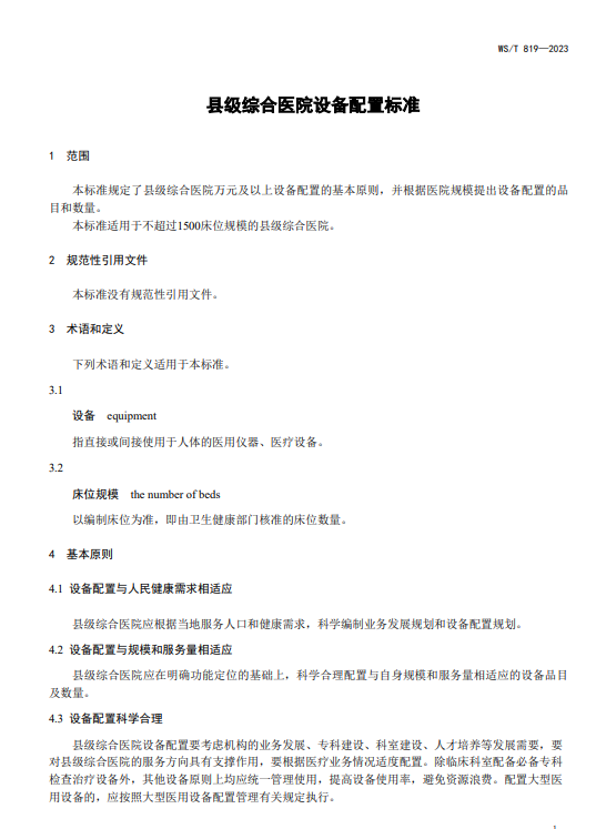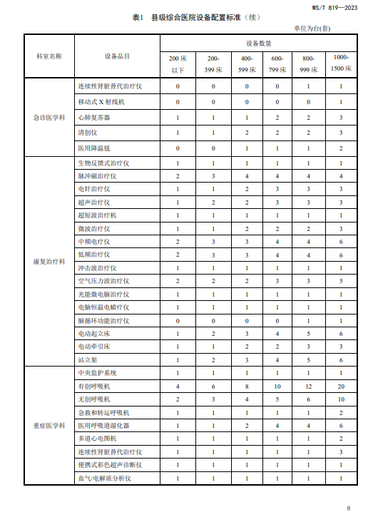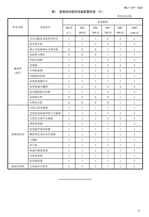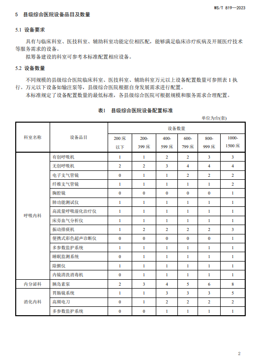 WST819—2023 县级综合医院设备配置标准