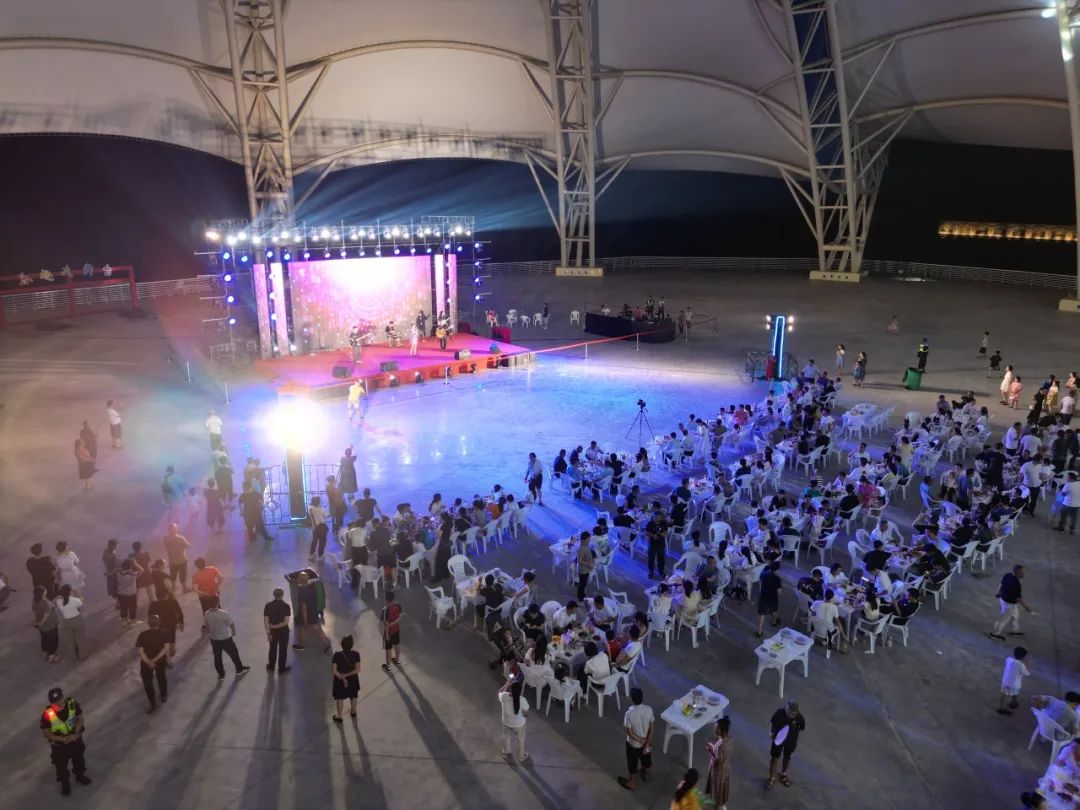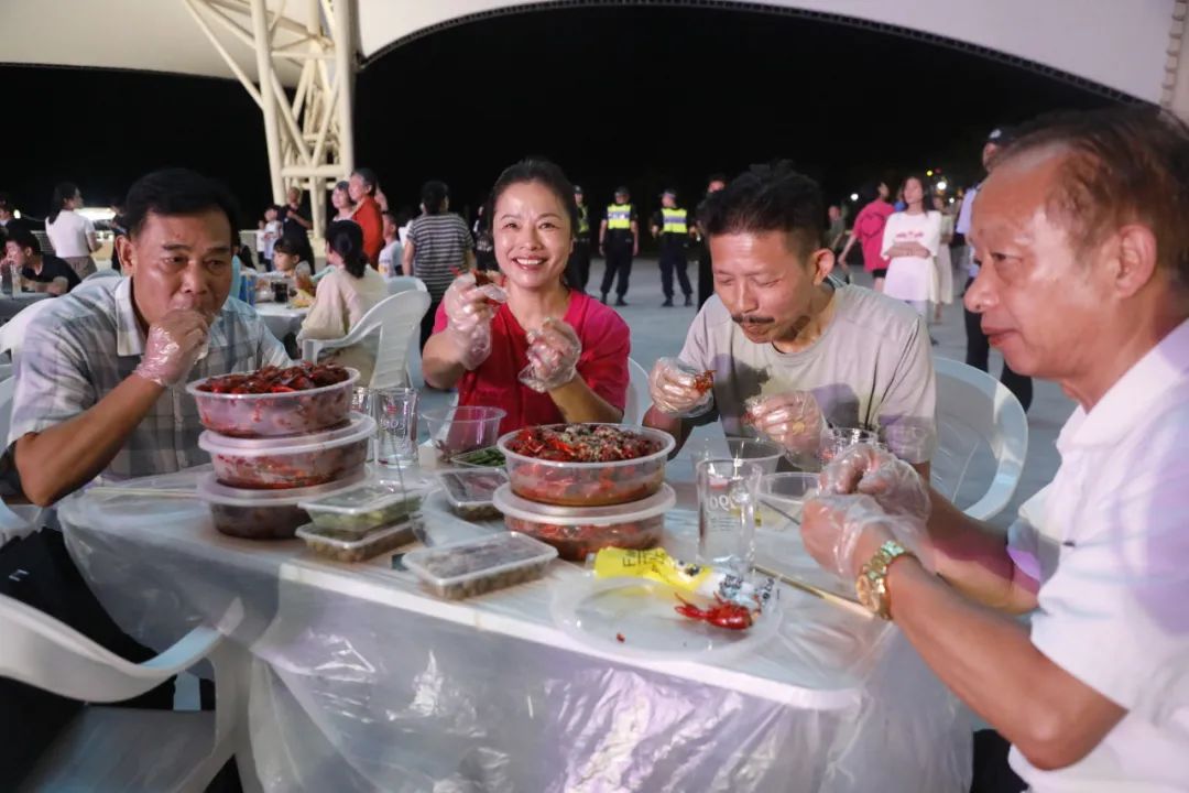开幕式的开场灯光秀引人入胜,数百人边吃龙虾边喝啤酒,乐队演出、DJ打碟等表演引发场下阵阵欢呼,主持人的抽奖互动给予游客实实在在的实惠,最后游客直接上台表演舞蹈、K歌。