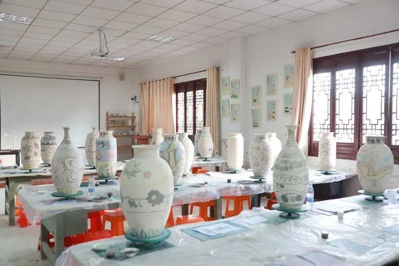 在专业老师的辅导下进行“皇窑”陶艺体验——釉下彩绘,完成自己的大器作品。