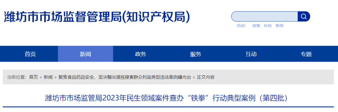 潍坊市市场监管局2023年民生领域案件查办“铁拳”行动典型案例(第四批)