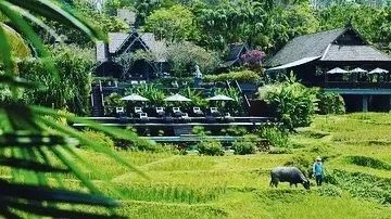 人的当地农民团队加一头水牛维护和演艺农耕生活。在酒店中可以体验丰富多彩的探险之旅,包括学习水稻种植、体验大象骑行、或在激流进行的木筏中感受湄平河的魅力等。在众多泰菜教室里,