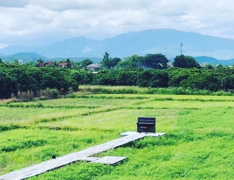 band表演。草垛夜市所用的材料都是废弃物品循环利用,集装箱盒子改成的店铺,废旧的铁皮桶、木箱子在这里变成了独特的桌子,干稻草堆成的草垛成为了舒服的凳子。一切看起来自然而原始的乡村元素,被用作灯红酒绿的时尚夜生活,原来乡村、夜市和酒吧也是可以组合。稻田咖啡,古董钢琴,藏在清迈郊外的一道风景。在这里,你会被大片大片的稻田椰树包围,沉浸在泰北的自然体验之中。在茂密的稻田里有着一家孤独的钢琴,虽然只是装饰用,但是这样的意境简直就是极致的文艺与浪漫。位于Chang Lor道路上,连接着清迈老城墙的外围道路,交通便利,可以方便到达想去的任何地方,提供轻松的休闲体验。采用结合东方特色与当代兰纳艺术风格来设计的客房,每间均有40平方米的宽敞起居区,享有花园及游泳池的美景。Makka酒店坐落于清迈古城内,外观犹如佛寺,距离热闹的契迪龙寺、周日夜市只有几百米的距离,却营造出了一个能让心安静下来的环境。传统拱顶房屋、莲花和佛教元素贯穿整间酒店、以及纯白色的墙上写著发人省思的英文句子,在Makka酒店随意走走都是一场心灵上的洗涤。标杆项目十八 | Art Mai Gallery Nimman酒店Art