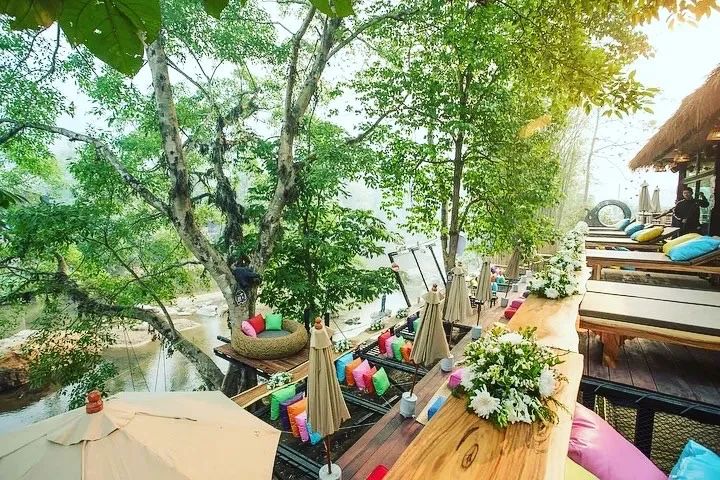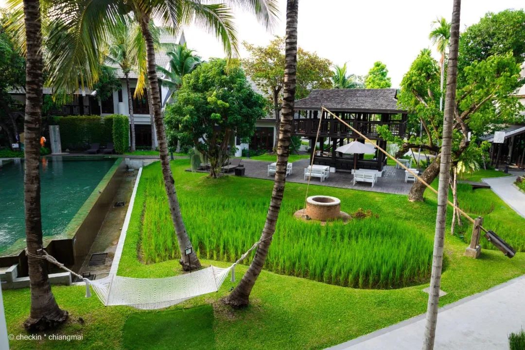 Market我们专注于食品、艺术与设计和工艺,为当地农民、艺术家和手工艺专家提供合作环境,销售他们的产品,同时在商业和更广泛的社区中建立互利关系;JJ当代艺术展览空间是另一个创造力的场所,呈现新的、多样化的视角,同时鼓励艺术爱好者和普通人在艺术作品中寻找放松的地方。丛林咖啡厅(Jungle De Café),一家把瀑布和森林都搬进了店里的咖啡馆,充分利用山涧和瀑布等自然资源,已发展了6家分店。数十种口味的咖啡、空中网床坐垫,成为网红打卡圣地。除了丛林咖啡馆,最具特色的还是森林中享受独特而愉快的丛林过山车和巨型秋千体验、以及热带雨林的滑索体验。烟草曾是泰北非常重要的农业支柱之一,这里的前身为当时清迈最大的烤烟厂。60多年来,旧烟厂不断变化经营理念,2016年开始在场地中将不同用途的建筑与施工工艺结合起来,其中18个被改造为酒店,极具兰纳特色的客房均完整保留了烤烟房数十年前的建筑外观。疗养中心、露天剧场、废弃烟草窑炉与具有标志性藤蔓的酒店之间,是主要的多功能户外活动空间。这里十分注重文化的回归和传播。每个月的第二个周日会邀请当地青少年过来分享泰北文化,不定期为大家带来精彩的泰拳表演、泰北音乐舞蹈表演、让泰国和海外的游客有机会零距离接触到泰北纯正的文化传统。清迈最早的高端集团酒店之一,酒店采用传统兰纳王朝时代风格设计,运用泰国当地建筑原料、织物装饰、建造,使其充满浓厚的泰国传统文化气氛。整座酒店的布局围绕着这一片稻田而建,由四大功能分区组成:酒店大堂区、大别墅区、小别墅区以及现状农田区域。稻田早餐、有机水疗、田园休闲活动,田园泳池可将美丽的湄林谷和水稻梯田景观尽收眼底,还有40