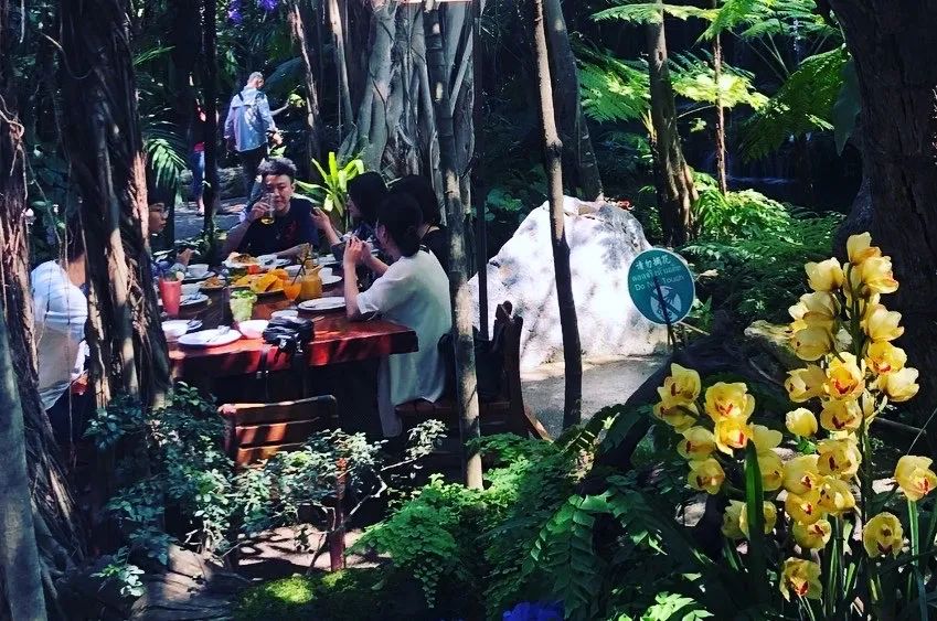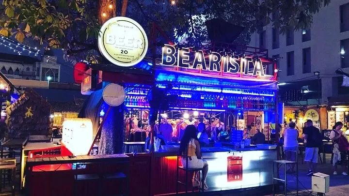 Cafe 餐厅还是一家生态主题泰餐+咖啡店,菜品的性价比也很高,冬阴功意面有创意又好吃,价格上完全没有国内网红店的高贵冷艳!黑森林餐厅利用植物景观“高颜值”构建了一个非常特色化的餐厅环境,也因此获得了泰国的设计大奖。参天树木、各种热带植被和瀑布水景搭配在一起,仿佛走进了一片真正的热带雨林。餐厅设置了各种不同的就餐场景,客人可以坐在五彩缤纷的花丛中,也可以坐在清澈的湖水边或潺潺流水的瀑布旁,还可以置身于树影婆娑的丛林中,在这风光旖旎的自然环境中享受泰北美食。餐厅难得一见的“最美厕所”,放在国内肯定也是“厕所革命”的标杆。草垛夜市隐藏在清迈长康路之中。这里不仅荟萃各国美食,而且晚上都会有高水平的live