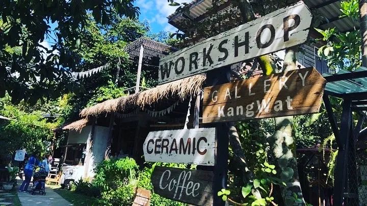 PARK”。大象是泰国的国宝,对大象文化体验的钻研,已经深入到玩转大象粑粑的程度了。大象粑粑纸主题公园提供了一个从大象粑粑到大象粑粑纸制工艺品的全过程体验,非常适合亲子活动。在这里不仅可以参观,更可以参与到粑粑纸的造纸过程,最后孩子们亲手把它制作成纪念品。值得一提的是,这个POOPOOPAPER品牌的产品早已输出到泰国各地,成为泰国旅游的伴手礼。靠近 Wat Umong 寺庙有一个别样的艺术村叫 Baan Kang Wat。艺术村复原了原始纳兰风格的村落设计,这里也被称为清迈“新兴文艺圣地”。艺术村的中心是一片有阶梯的空地,方便放映露天电影,如果有活动时会变成小小的表演区。艺术村有