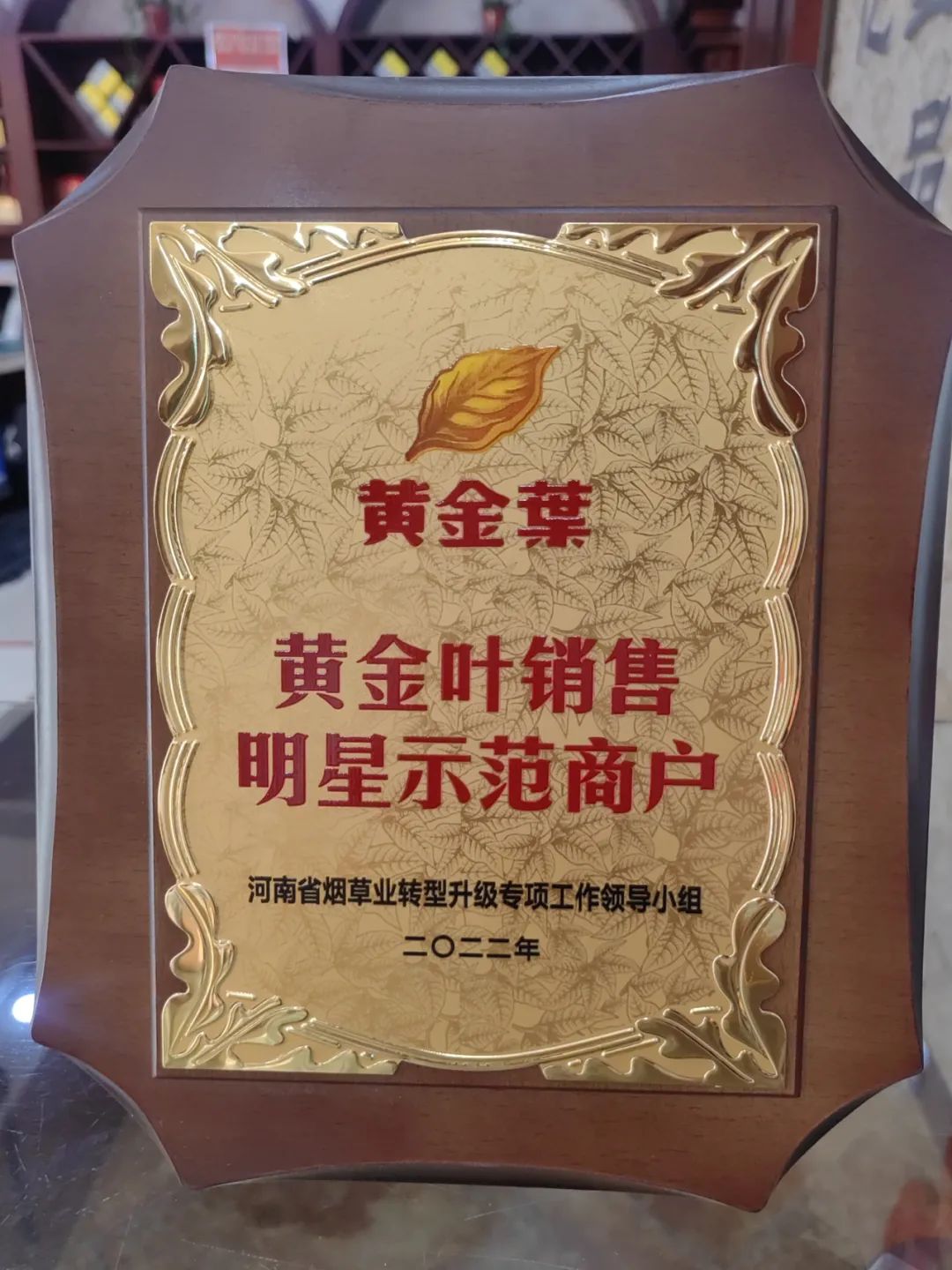 8月11日上午,亿星酒业公司中原路12店被河南省烟草业转型升级专项工作领导小组授予2022年度“黄金叶销售明星示范商户”荣誉牌匾。