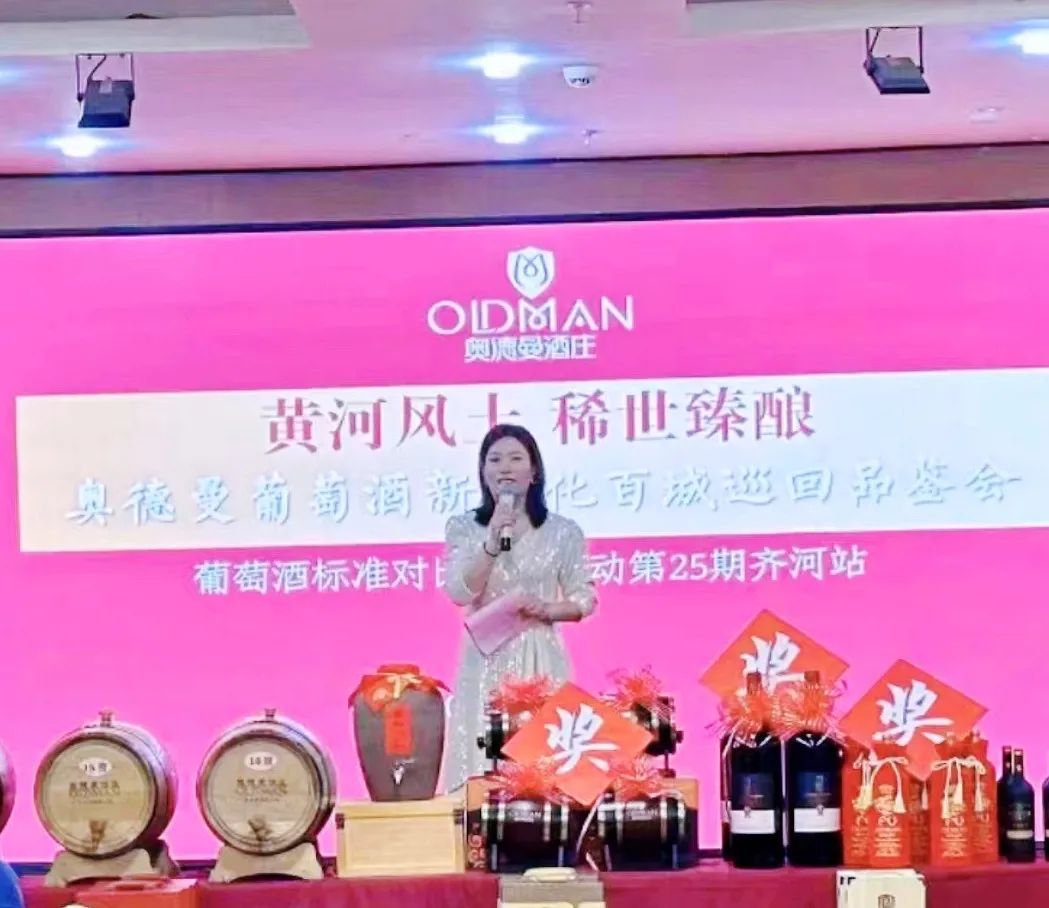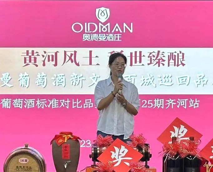 随后齐河代理商韩素娟致辞。韩总表示,非常感谢酒庄庄主、董事长徐义亲自到齐河开展品鉴及新文化宣讲活动,支持商家工作,同时也感谢前来参加活动的新老客户,希望大家珍惜这难得的机会,仔细品味奥德曼的各款美酒,也学到更多红酒文化知识。