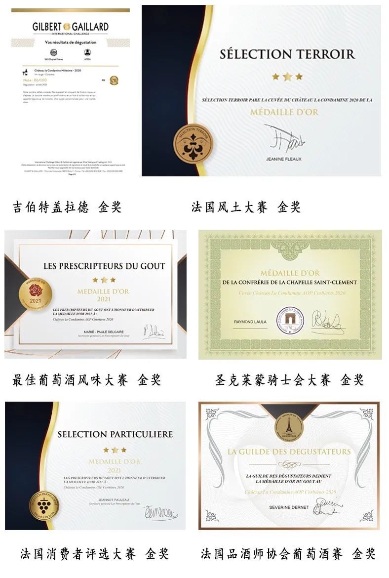 荣获国际六项大奖‼️ 口感:酒液呈红宝石略紫色的光泽,口感平衡圆润,果味饱满;风味突出而富有层次,余韵悠长,带有浓郁果香,层次丰富。 ?圣克莱蒙骑士会大赛 金奖 ?法国风土大赛 金奖 ?最佳葡萄酒风味大赛 金奖 ?吉伯特盖拉德 金奖 ?法国消费者评选大赛 金奖 ?法国品酒师协会葡萄酒赛 金奖