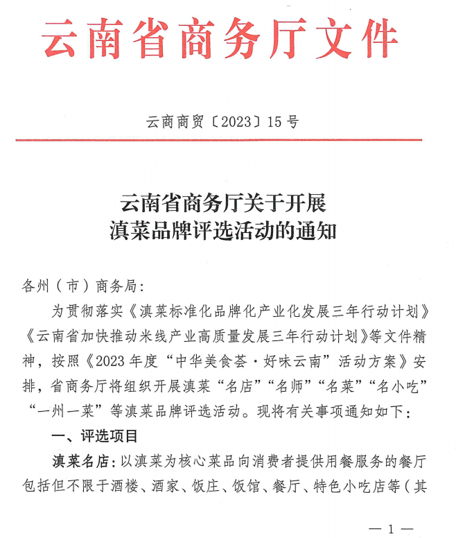 8月上旬-9月下旬:根据省政府《滇菜三年行动计划》相关要求,全面开展名店、名厨、名菜、名小吃“四名”评选活动。