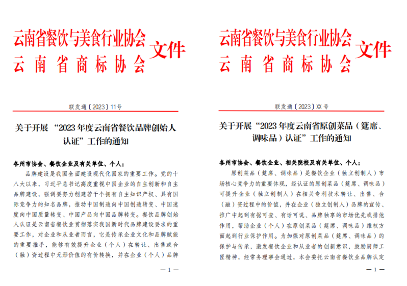 7月下旬-9月30日:云南省餐饮品牌创始人、原创菜品(筵席、调味品)认证工作(省餐饮协会与省商标协会联合开展首期认定,“双协会”“双认证”“双保护”)。