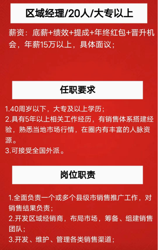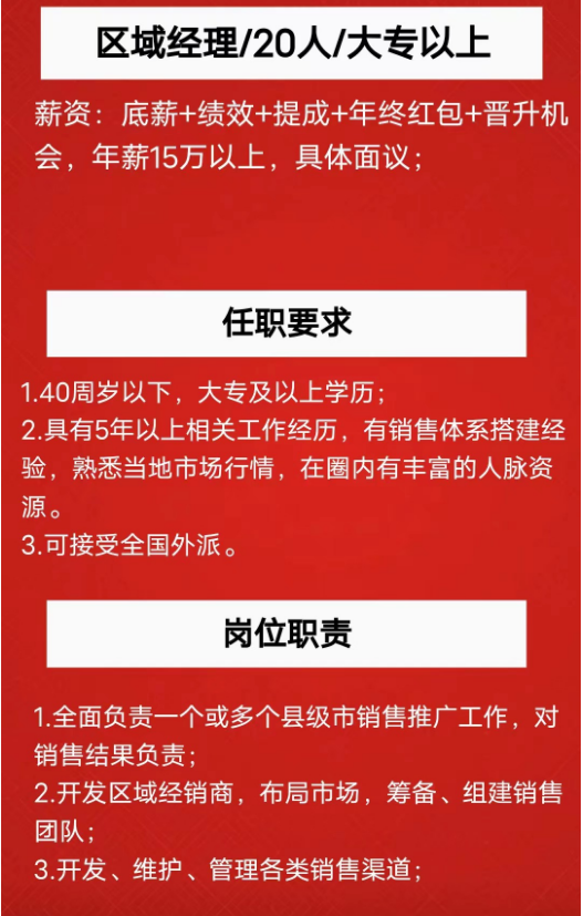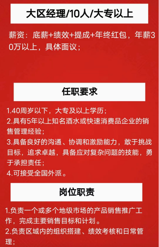 岗位要求:年龄40岁左右,酒类及快消品从业五年以上,大专以上文凭。