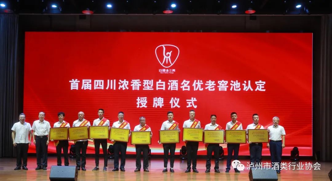 四川中国白酒金三角酒业协会副理事长兼秘书长陈大智宣读川酒金三角协〔2023〕07号关于公布首届四川浓香型白酒名优老窖池认定结果的通知,对51家企业予以认定授牌,并对泸州产区代表企业进行颁奖授牌。
