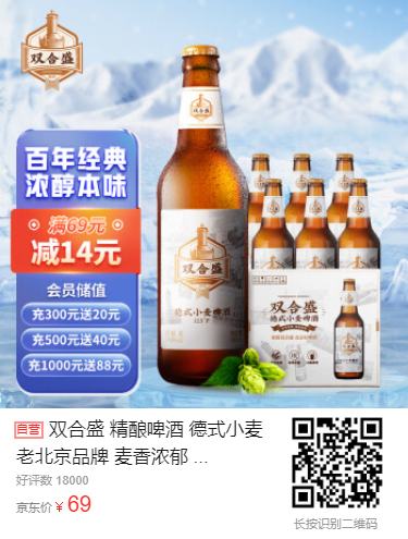 品味双合盛精酿啤酒,饱含德国工艺与老北京传统,浓郁麦香带来口感盛宴。与烤肉、海鲜、奶酪等美食搭配,尽享绝妙味蕾体验。快来品味这款征服味蕾与心灵的爆款!