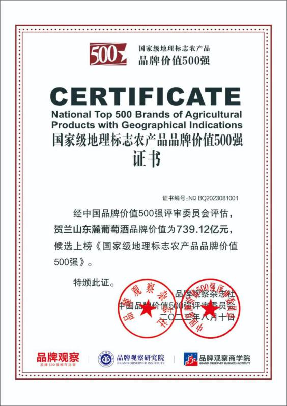 为实现对国家地理标志农产品的整体品牌升级,以此带动乡村振兴和共同富裕,《品牌观察》杂志社于2022年5月首创中国地标节,作为国内首家专注研究、推动国家地理标志农产品IP品牌化的第三方平台,专注挖掘开发中外地标产品有显著成效的农业龙头企业,宣传和推广他们的经验。2023年8月10日,中国地标节组委会、《品牌观察》杂志社联合发布《国家地理标志葡萄品牌价值排行榜》,全国26个省份共计73种葡萄(酒)上榜,品牌价值总额达5704.64亿元,其中:贺兰山东麓葡萄酒品牌价值739.12亿元位列榜首、烟台葡萄酒品牌价值655.92亿元排名第二位、吐鲁番葡萄品牌价值413.26亿元排名第三位。
